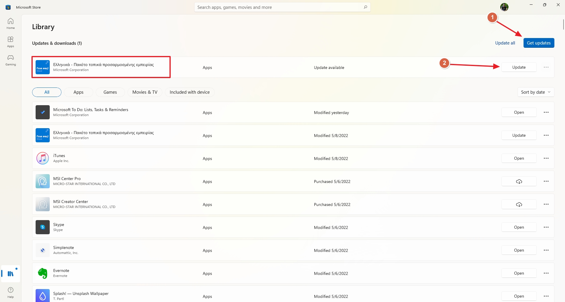 Οι μεταφράσεις θα ενημερώνονται μελλοντικά από το Microsoft Store, και μπορείς είτε να τις αφήνεις να ενημερώνονται αυτόματα, είτε να τις ενημερώνεις χειροκίνητα κάθε φορά ακολουθώντας τα ίδια βήματα.