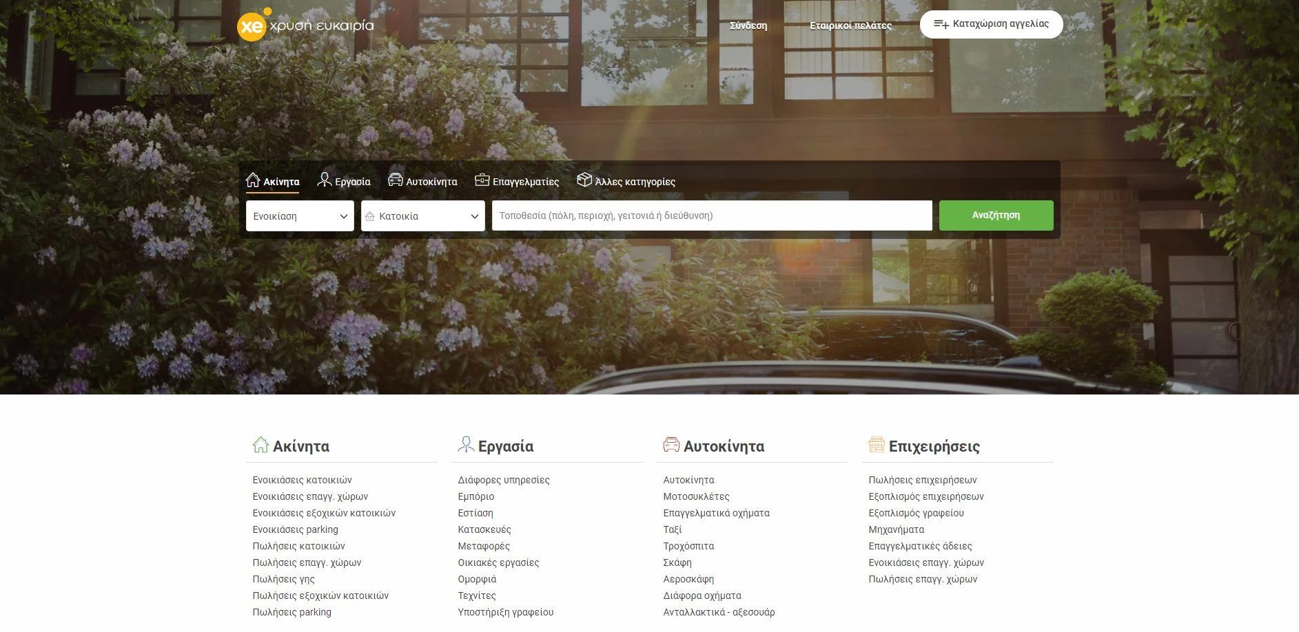 Το xe.gr – αλλιώς «Χρυσή Ευκαιρία» – εκτός από τα ακίνητα, τα αυτοκίνητα και την πώληση / ενοικίαση επιχειρήσεων και κατοικιών, παρέχει επίσης και μια τεράστια γκάμα από ανοιχτές θέσεις εργασίας σε ολόκληρη την Ελλάδα. Το μόνο που έχεις να κάνεις είναι να μπεις στην ενότητα “Εργασία” και να αναζητήσεις για θέσεις είτε ανά κατηγορία, είτε ανά ειδικότητα, είτε σε συγκεκριμένες περιοχές. Η ιστοσελίδα σου δίνει επίσης την δυνατότητα να δημιουργήσεις λογαριασμό, ενώ παρέχει επίσης και εφαρμογή για Android και iOS συσκευές.