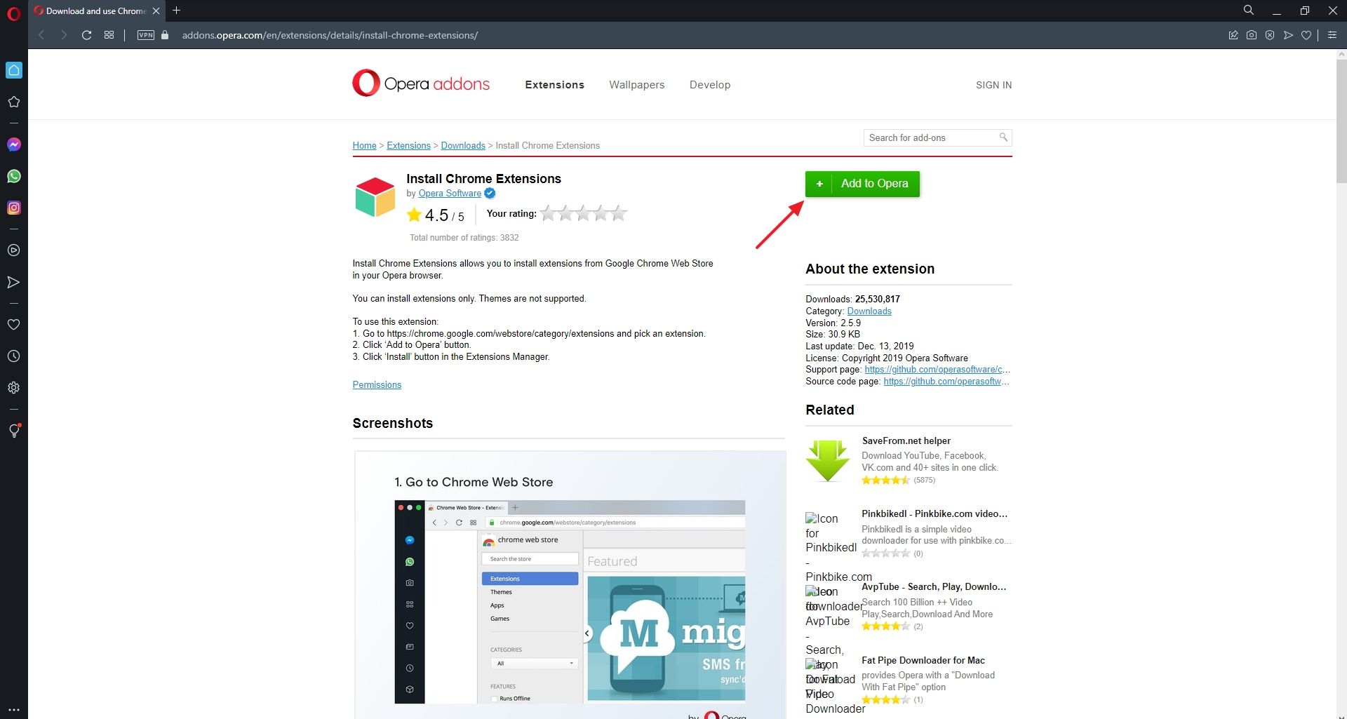 Σε αντίθεση με τον Vivaldi Browser, ο οποίος δεν χρειάζεται κάποια έξτρα επέκταση για να υπάρχει συμβατότητα μεταξύ του Chrome Web Store, στον Opera είναι αναγκαστικό να εγκαταστήσεις πρώτα το Install Chrome Extensions, το οποίο ωστόσο είναι ένα πολύ ελαφρύ και απλό addon.