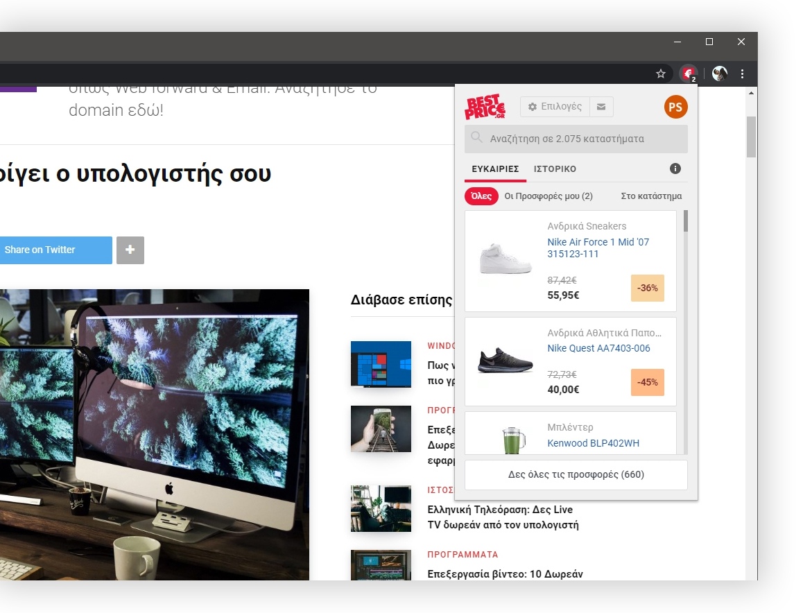 Και αν λατρεύεις απλά να παρακολουθείς όλες τις νέες προσφορές και τις ευκαιρίες που υπάρχουν, τότε το πρόσθετο θα σε ενημερώνει συνεχώς για όλες τις καινούργιες ευκαιρίες και προσφορές από όλα τα ηλεκτρονικά καταστήματα που υπάρχουν στο BestPrice.