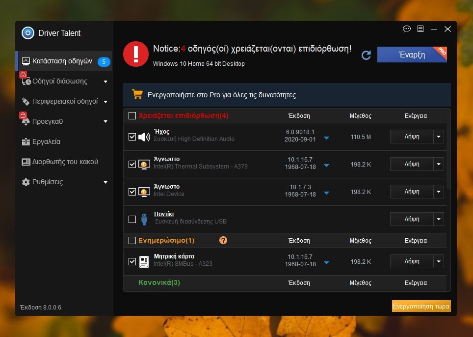 - Σαρώνει για ανημέρωτους ή ελλιπής drivers.