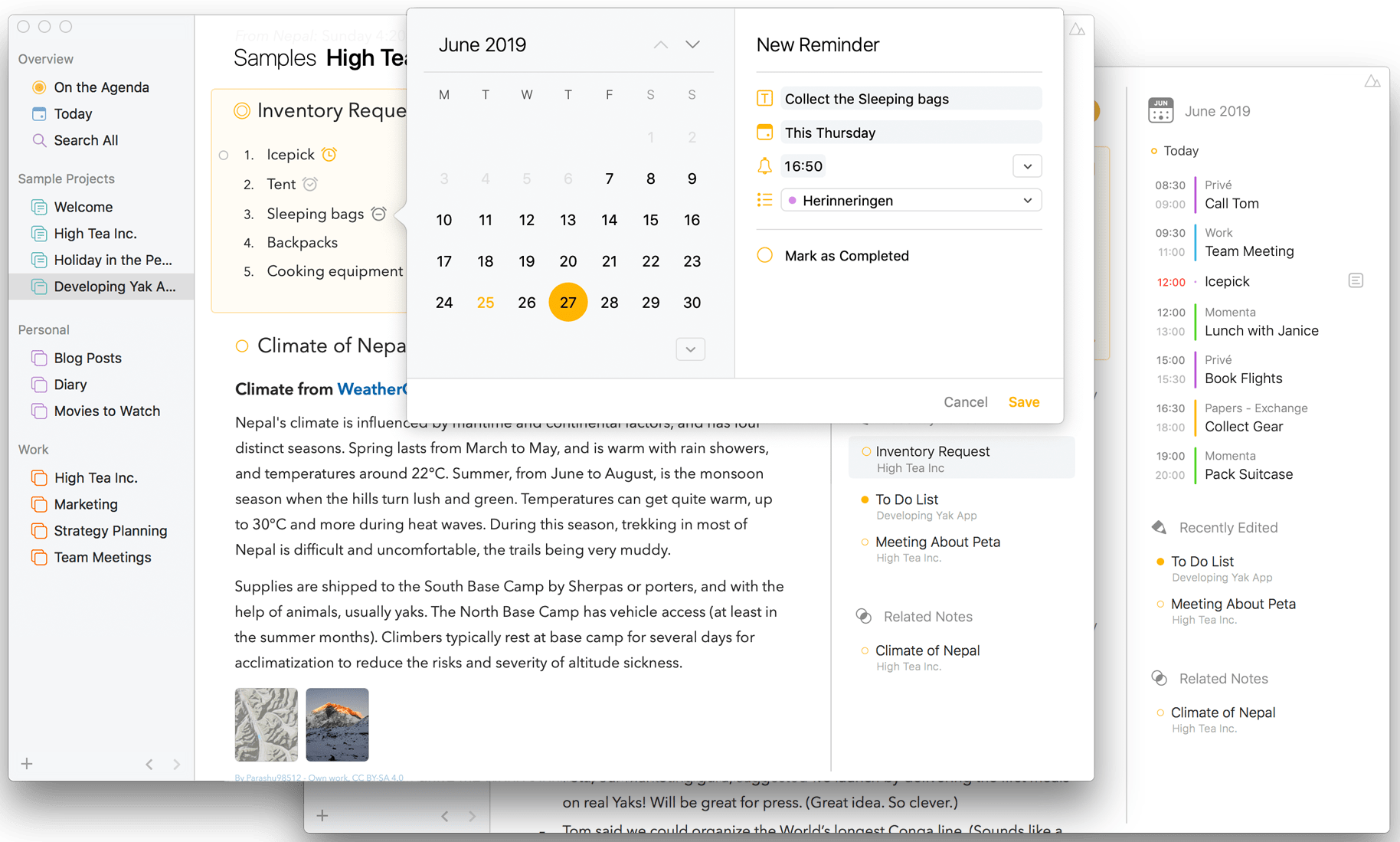 Το Agenda παρέχει ένα μοντέρνο και ιδιαίτερα ελκυστικό περιβάλλον χρήσης και σου επιτρέπει να εισάγεις στις σημειώσεις σου φωτογραφίες, αρχεία, ετικέτες και συνδέσμους, καθώς επίσης και να ενεργοποιείς ειδοποιήσεις αλλά και να τις προσθέτεις στο calendar σου.