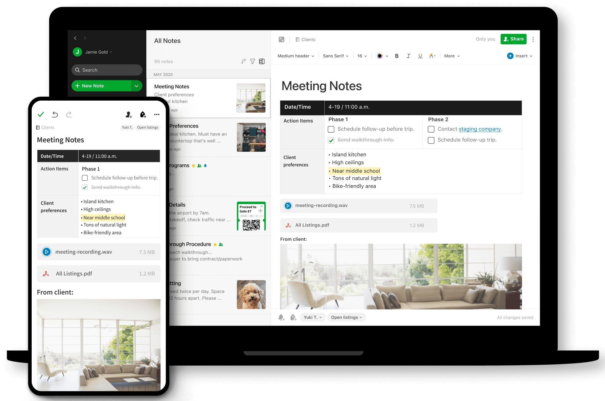Το Evernote είναι αναμφισβήτητα μια από τις γνωστότερες και μεγαλύτερες δωρεάν εφαρμογές σημειώσεων για κινητά και PCs, καθώς επίσης και η εφαρμογή που σου έρχεται πρώτη στο μυαλό όταν αναζητάς σε αυτή την κατηγορία. Έρχεται με έναν μοντέρνο κλασικό αλλά μοντέρνο σχεδιασμό, σου επιτρέπει να συγχρονίζεις online όλες τις σημειώσεις σου και σου επιτρέπει να εισάγεις φωτογραφίες, συνδέσμους, κείμενα, έγγραφα, ηχογραφήσεις κ.α.