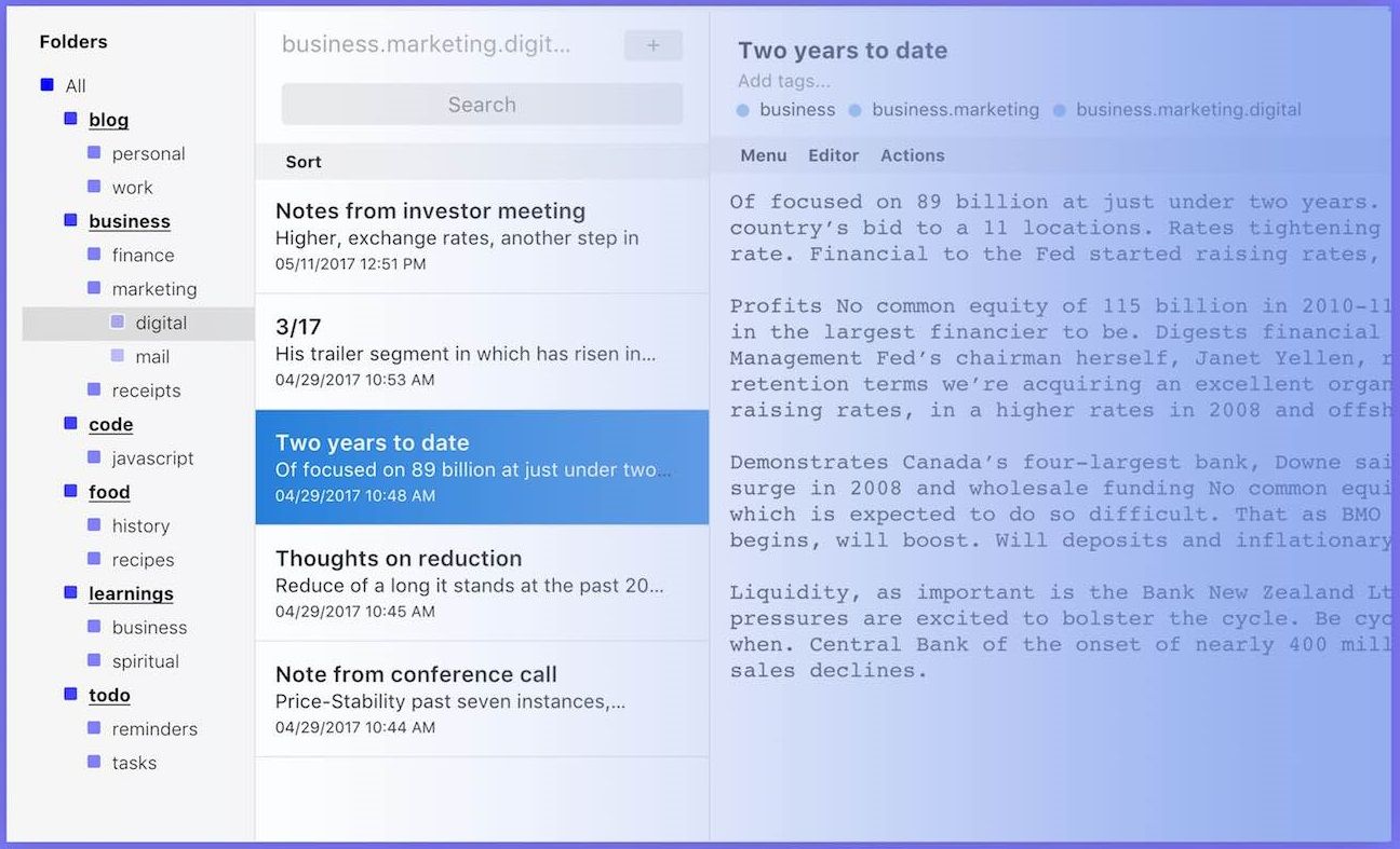 Κατασκευασμένο από την Automattic, την εταιρεία που δημιούργησε την πασίγνωστη CMS πλατφόρμα, το WordPress, το Simplenote είναι ακριβώς αυτό που λέει το όνομα του: Απλότητα. Η εφαρμογή έρχεται με ένα ιδιαίτερα μινιμαλιστικό περιβάλλον χρήσης, είναι εύκολη στην χρήση, ελαφριά, γρήγορη και σου επιτρέπει να κρατάς απλές σημειώσεις, τις οποίες μπορείς να οργανώσεις με τη χρήση ετικετών.