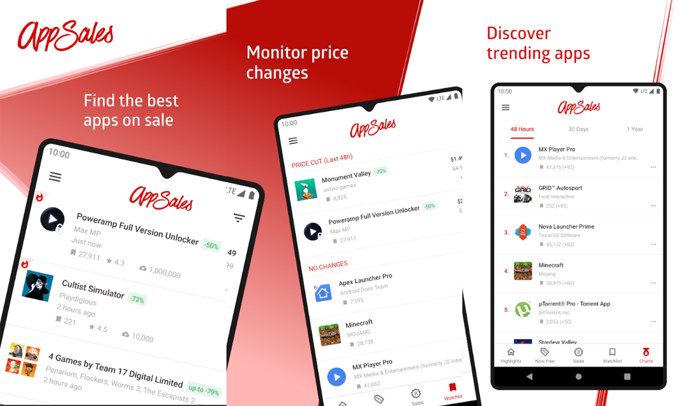 Το AppSales είναι παρόμοια εφαρμογή με το AppsFree και πάνω-κάτω κάνουν και οι δύο την ίδια δουλειά: Σου παρέχουν δωρεάν εφαρμογές στο Play Store που αλλιώς θα πλήρωνες για να τις αποκτήσεις. Όλες οι εφαρμογές που θα βρεις μέσα από το AppSales παρέχονται δωρεάν για ένα μικρό χρονικό διάστημα. Σε αντίθεση με το AppsFree, το AppSales σου επιτρέπει να αναζητάς εφαρμογές βάση του κόστους, βάση των πιο πρόσφατων και βάση των πιο δημοφιλή εφαρμογών.