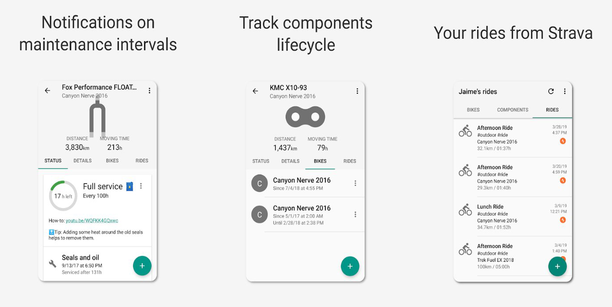 Μιας και η εφαρμογή συνδέεται άψογα με το Strava, θα συγχρονίσει αυτόματα όλες τις ήδη υπάρχον διαδρομές σου από το Strava λογαριασμό σου. Για να είναι ακόμα πιο αποτελεσματικό ως εργαλείο συντήρησης, το ProBikeGarage ενημερώνει καθημερινά την απόσταση και το χρόνο και σου επιτρέπει να βάλεις όλα τα εξαρτήματα που έχει το ποδήλατο σου, έτσι ώστε να παρέχει πιο σωστές και αξιόπιστες ενημερώσεις.