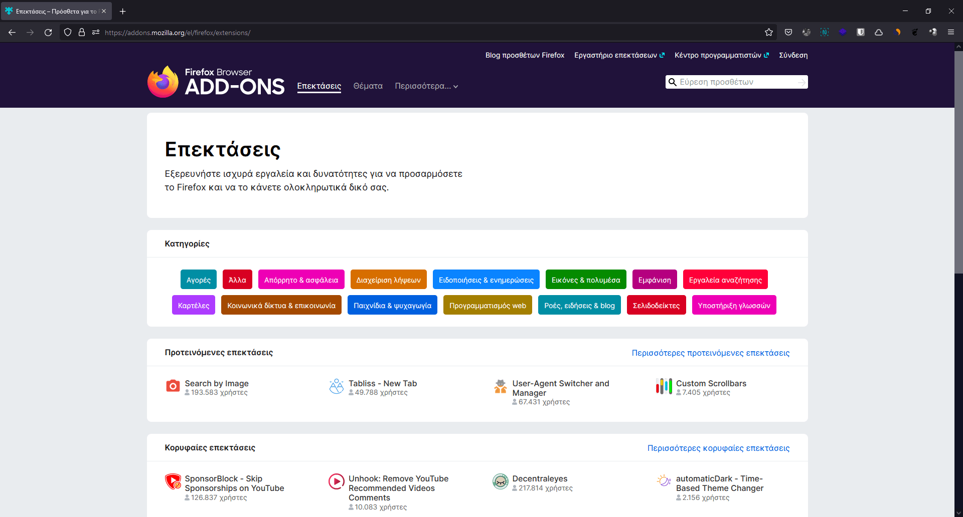 - 1. Επισκέψου το Firefox Browser Add-Ons