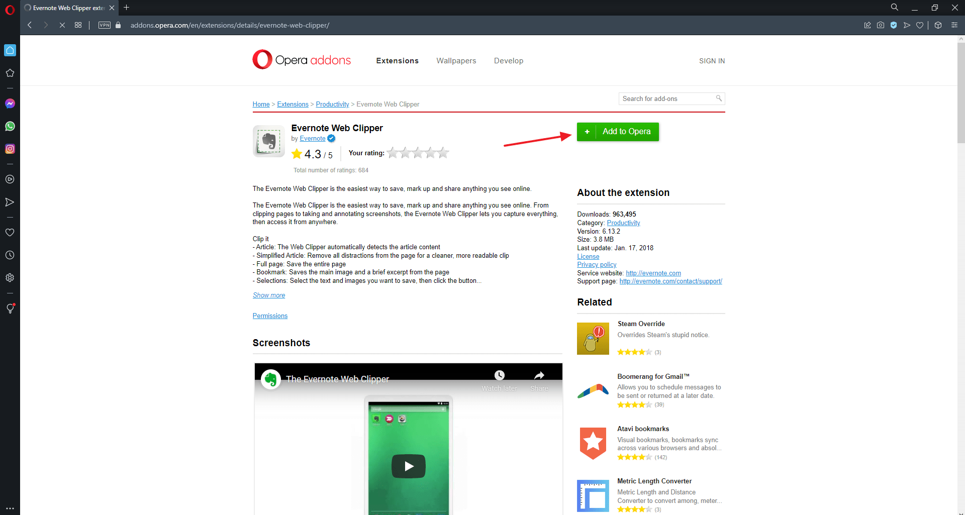 Κάνε κλικ πάνω στην επέκταση που θέλεις να εγκαταστήσεις και μόλις μεταφερθείς στη σελίδα της, κάνε κλικ στην επιλογή “Add to Opera“.
