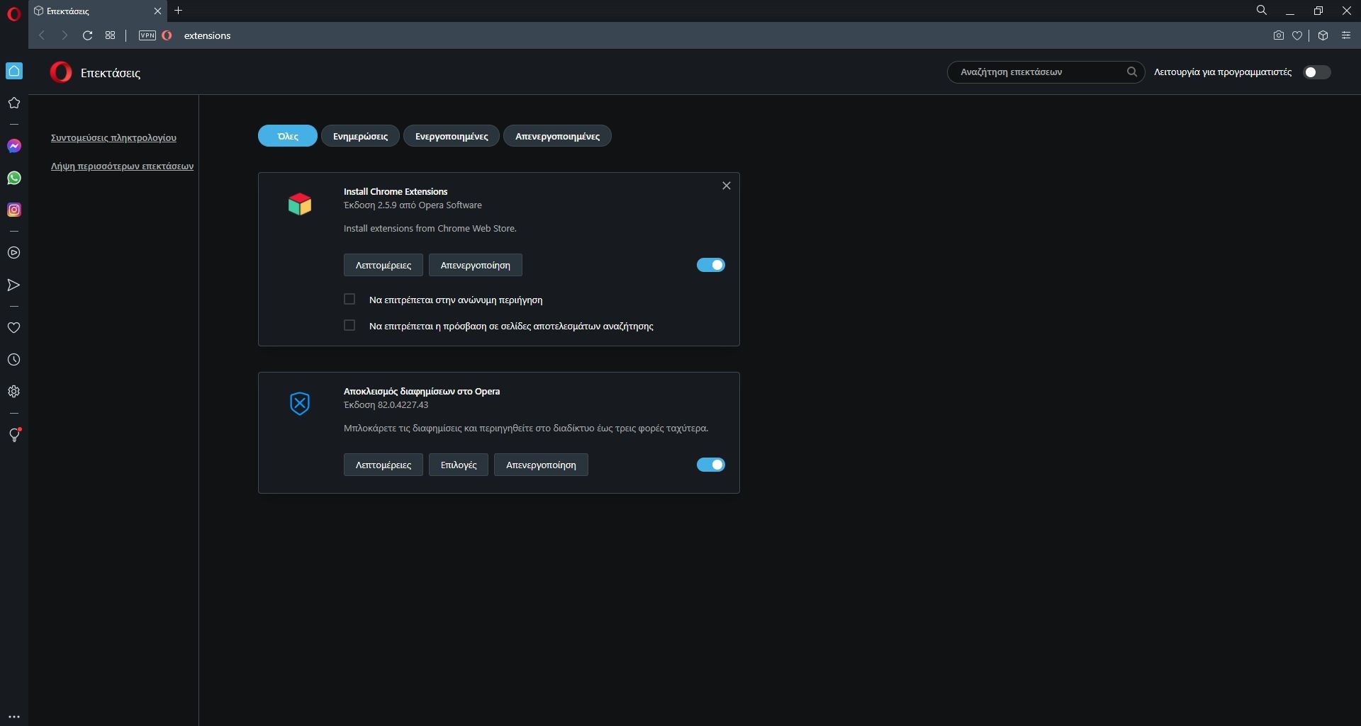 - Εγκατάσταση και διαχείριση επεκτάσεων στον Opera