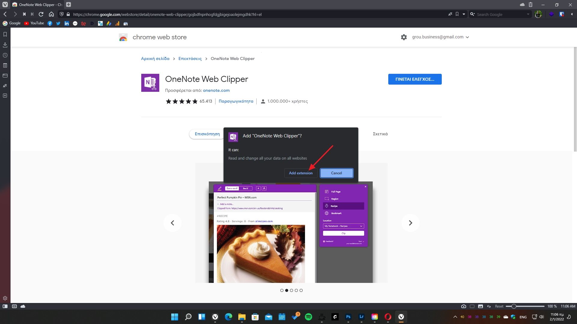 Η διαδικασία είναι η ίδια όπως και στα υπόλοιπα Chromium προγράμματα περιήγησης. Επισκέψου τη σελίδα μιας επέκτασης, κάνε κλικ στο κουμπί “Προσθήκη” και στο αναδυόμενο παράθυρο που θα εμφανιστεί κάνε κλικ στην επιλογή “Προσθήκη επέκτασης“.