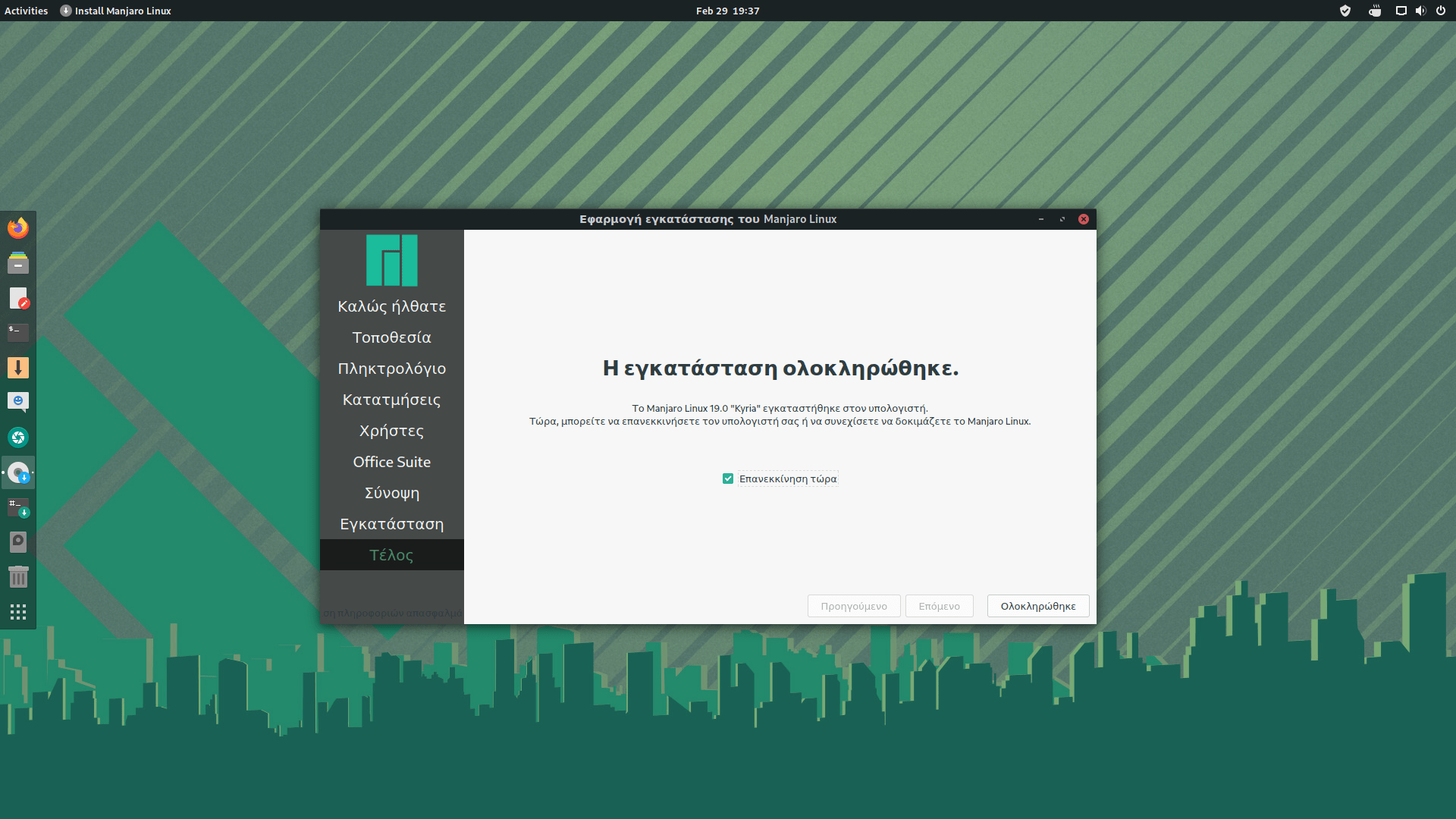 Κάνε επανεκκίνηση και θα σου εμφανίσει την επιλογή για το λειτουργικό σύστημα το οποίο θέλεις να χρησιμοποιήσεις. Στην περίπτωση που αντιμετωπίσεις κάποιο πρόβλημα και μετά την εγκατάσταση ανοίγουν μόνο τα Windows και όχι το Manjaro Linux, ή και το αντίθετο, μπορείς να το φτιάξεις ακολουθώντας αυτές τις οδηγίες.