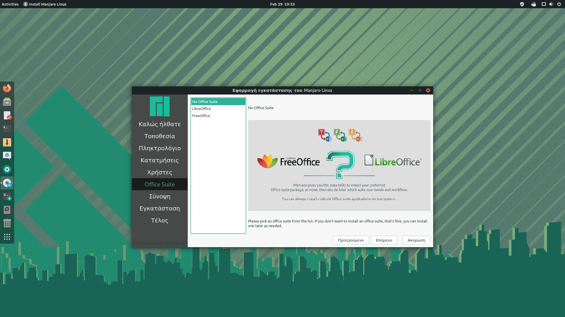 7. Επέλεξε αν θέλεις να εγκαταστηθούν και τα LibreOffice ή τα FreeOffice για να μπορείς να έχεις μια σουίτα προγραμμάτων όπως τα Microsoft Office για τα Windows.