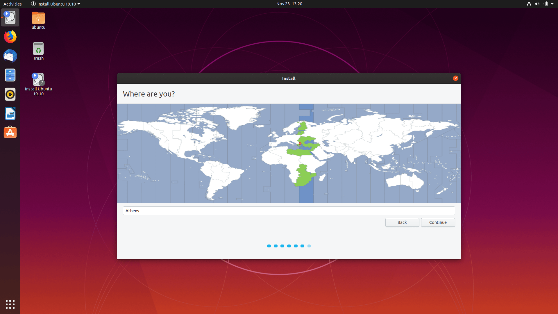 12. Η εγκατάσταση του Ubuntu έχει ξεκινήσει. Τώρα, θα χρειαστεί να συμπληρώσεις ορισμένες βασικές πληροφορίες στο λειτουργικό, ξεκινώντας με την επιλογή της τοποθεσίας σου. Με το που επιλέξεις την τοποθεσία, κάνε κλικ στην επιλογή “Continue” για να συνεχίσεις.