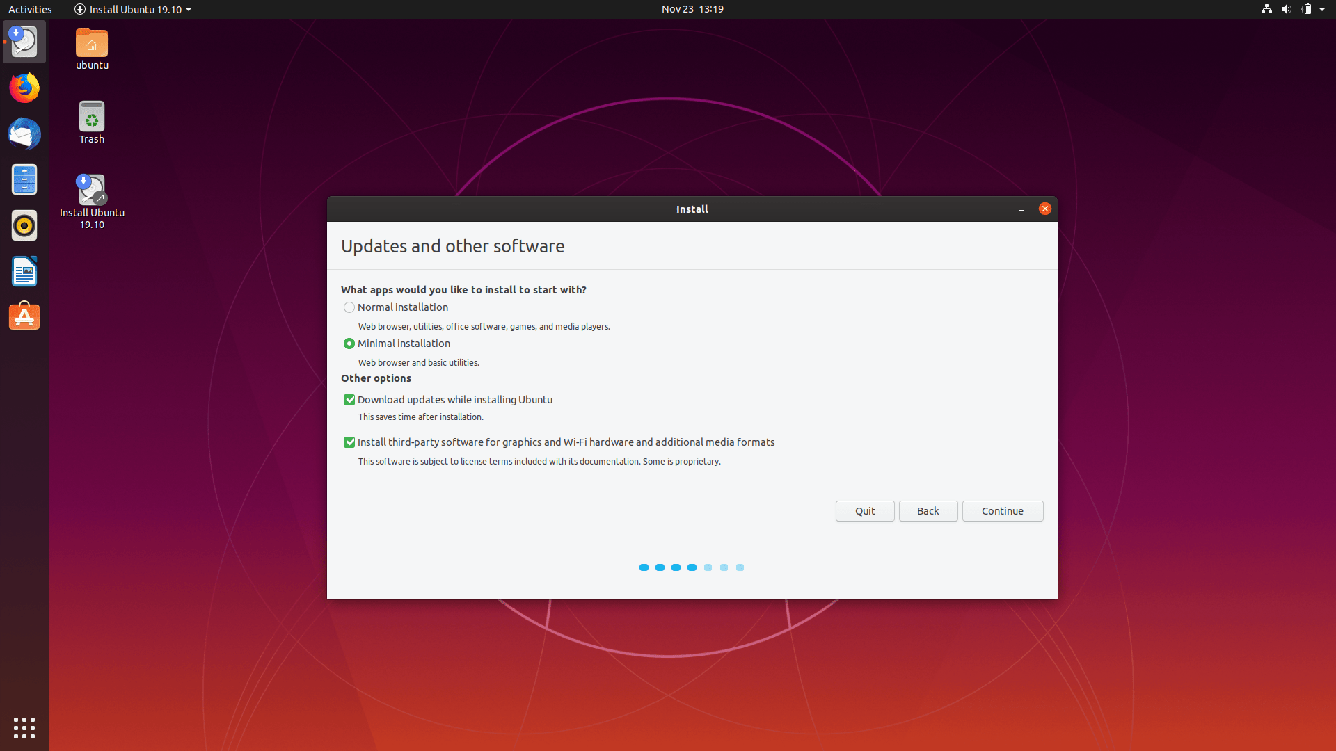 • Minimal Installation: Καθαρή εγκατάσταση του Ubuntu χωρίς περιττά προγράμματα. Μπορείς να τα εγκαταστήσεις στην συνέχεια από το Ubuntu Software Center.