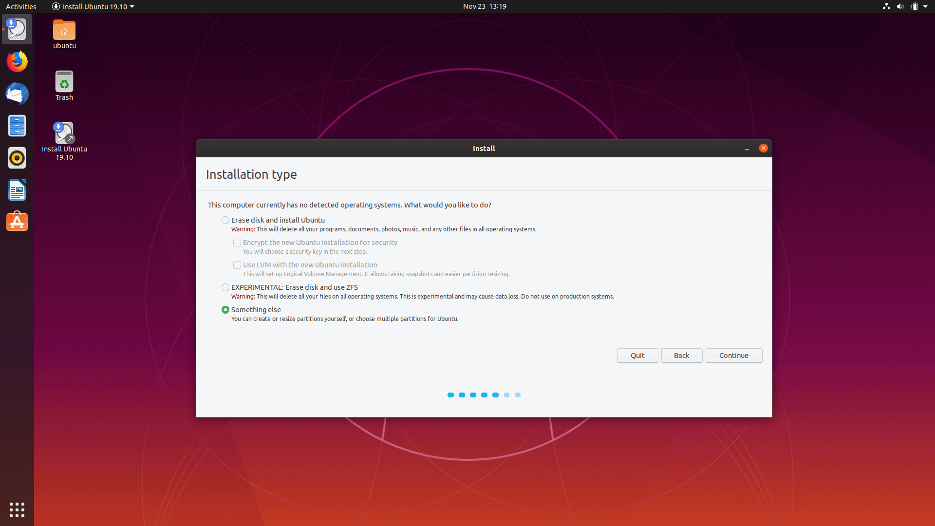 5. Σε αυτό το σημείο θα χρειαστεί να επιλέξεις για το αν θέλεις το Ubuntu να διαγράψει ολόκληρο τον σκληρό σου δίσκο και να αφαιρέσει οτιδήποτε άλλο υπάρχει (συμπεριλαμβανομένων και των Windows), ή αν θέλεις να τα εγκαταστήσεις μαζί με τα Windows. Επέλεξε την επιλογή “Something else” για να εγκαταστήσεις το Ubuntu μαζί με τα Windows.