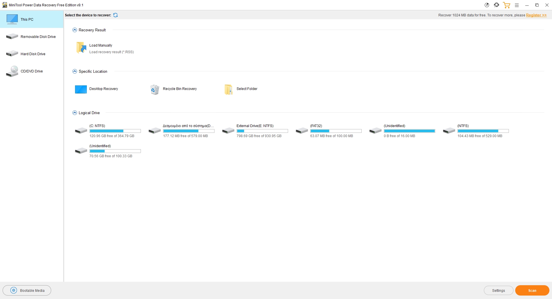 Το πρόγραμμα μπορεί να καλύψει σχεδόν κάθε αποθηκευτική συσκευή, συμπεριλαμβανομένων και των HDD και SSD δίσκων, καθώς επίσης και των εξωτερικών σκληρών δίσκων, USB φλασάκια, SD κάρτες και memory κάρτες, καθώς επίσης και από άλλες διάφορες αποθηκευτικές συσκευές. Η δωρεάν έκδοση σου επιτρέπει να επαναφέρεις μόλις 1GB αρχείων, αλλά με μόλις 3 εύκολα βήματα θα μπορέσεις να σώσεις τα πιο σημαντικά σου αρχεία.