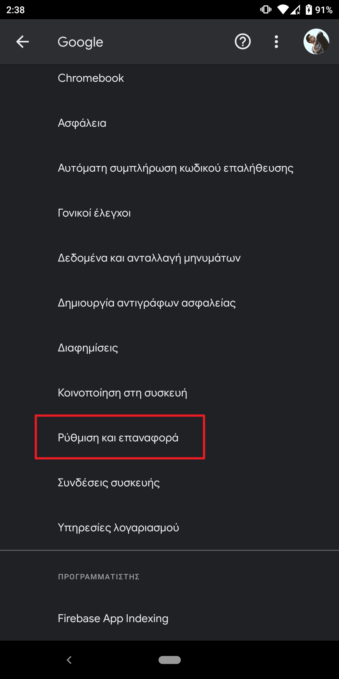 3. Κάνε κλικ στην επιλογή Ρύθμιση και επαναφορά.