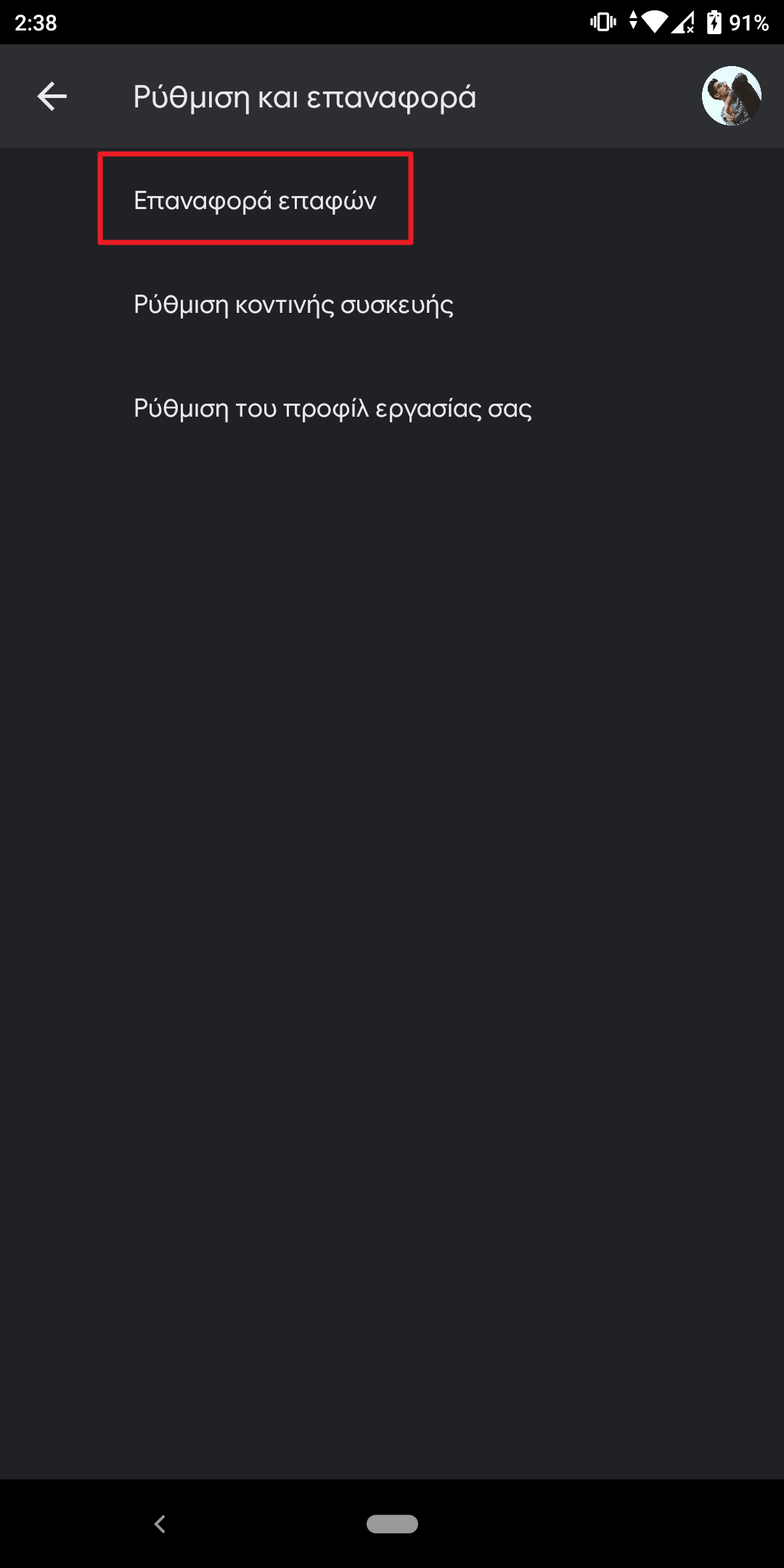 Κάνε κλικ στην επιλογή Επαναφορά επαφών.