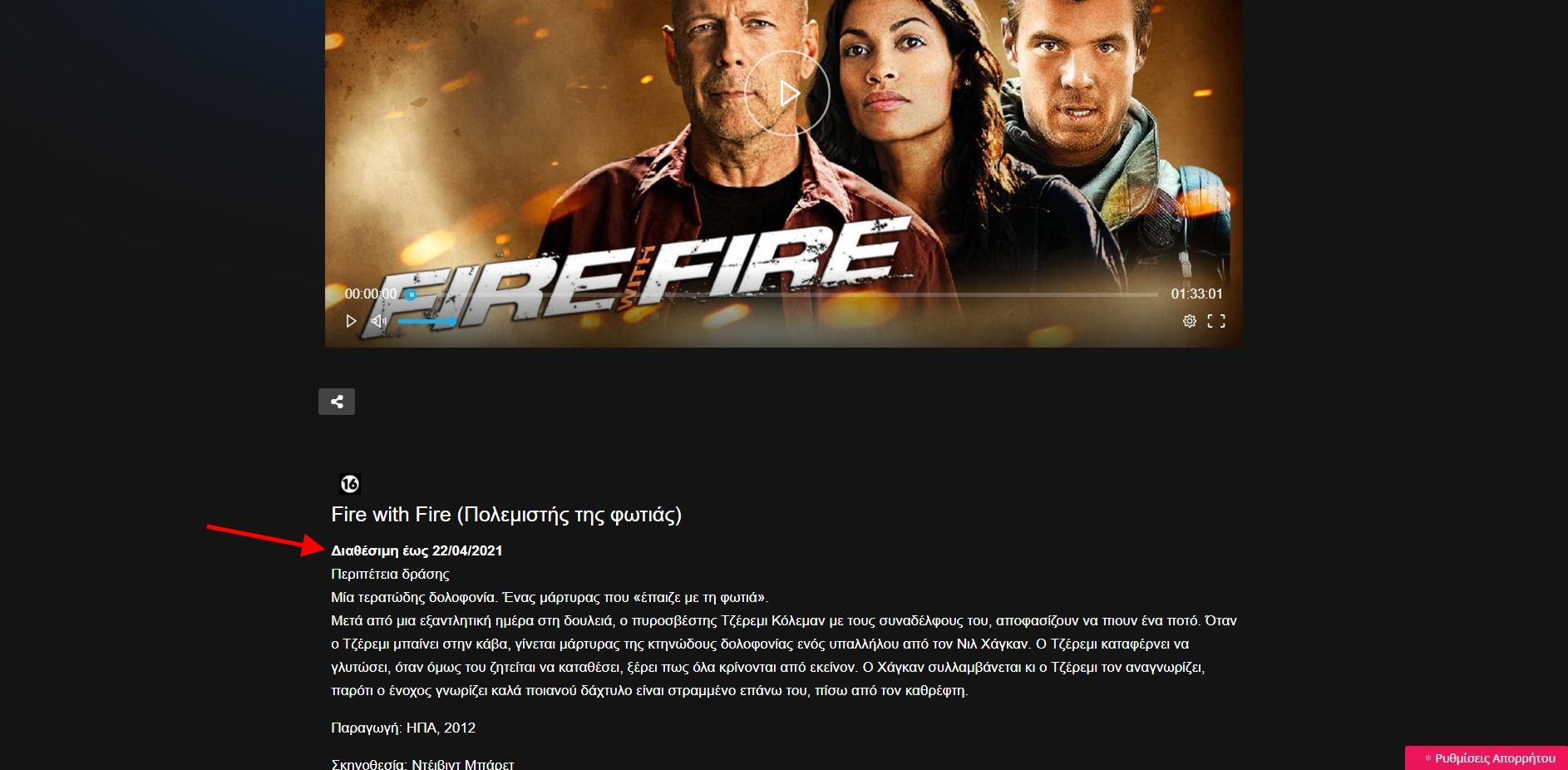 Για κάθε ταινία που θέλεις να παρακολουθήσεις, το ΕΡΤflix σε ενημερώνει έως πότε θα παραμένει διαθέσιμη στην υπηρεσία του.