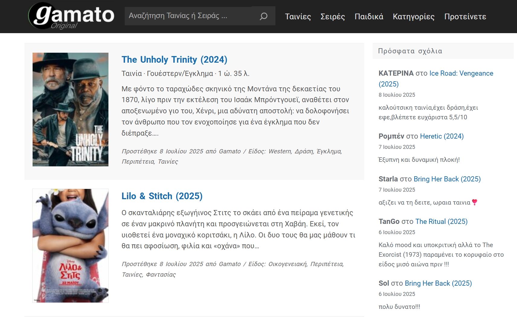 Ένας από τους καλύτερους τρόπους για να παρακολουθείς δωρεάν ταινίες και σειρές με ελληνικούς υπότιτλους είναι μέσω του Gamato TV, μια ιστοσελίδα που παρέχει εκατοντάδες μεγάλους και μικρούς τίτλους ταινιών και σειρών.