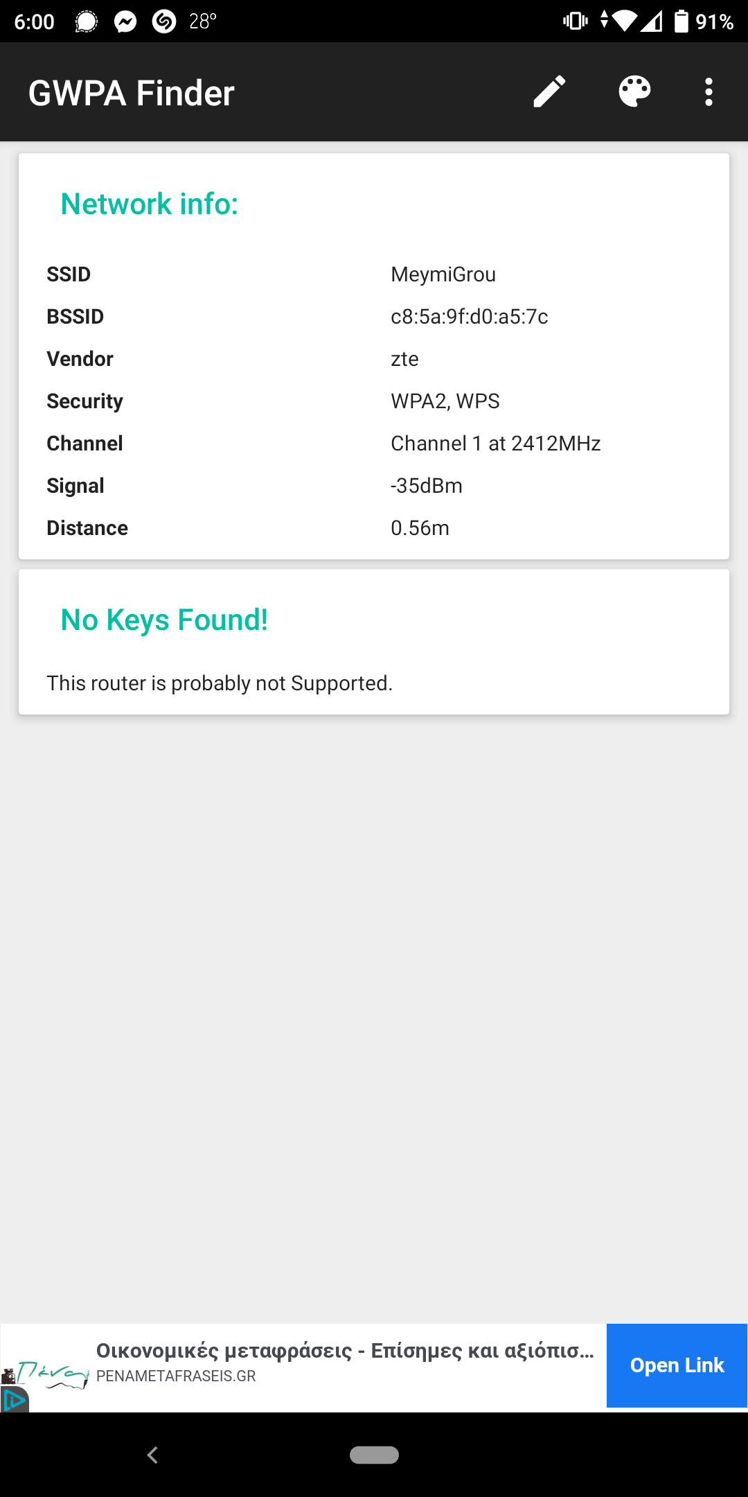 Το Greek WPA Finder είναι μια δωρεάν Android εφαρμογή την οποία μπορείς να κατεβάσεις από το Play Store. Μόλις την εγκαταστήσεις και δώσεις όλα τα απαραίτητα δικαιώματα για να λειτουργεί σωστά, άνοιξε το WiFi της συσκευής σου και μέσα από το Greek WPA Finder έλεγξε ποια δίκτυα υποστηρίζονται και ποια όχι.