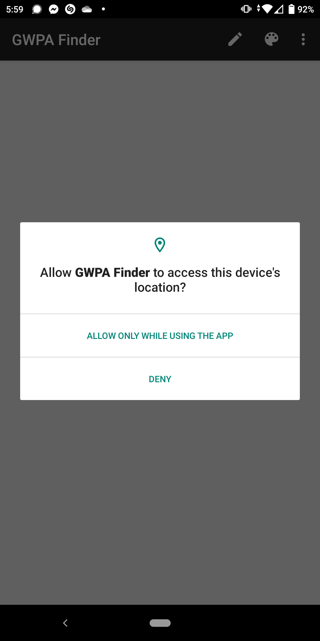 Όταν ανοίξεις για πρώτη φορά την εφαρμογή, θα σου ζητήσει να της δόσεις δικαιώματα για να αποκτήσει πρόσβαση στην τοποθεσία σου. Η εφαρμογή αποκτάει πρόσβαση στην τοποθεσία μας μόνο όταν την χρησιμοποιούμε.Greek WPA Finder Εντοπισμός κωδικών από WiFi δίκτυα 6 1