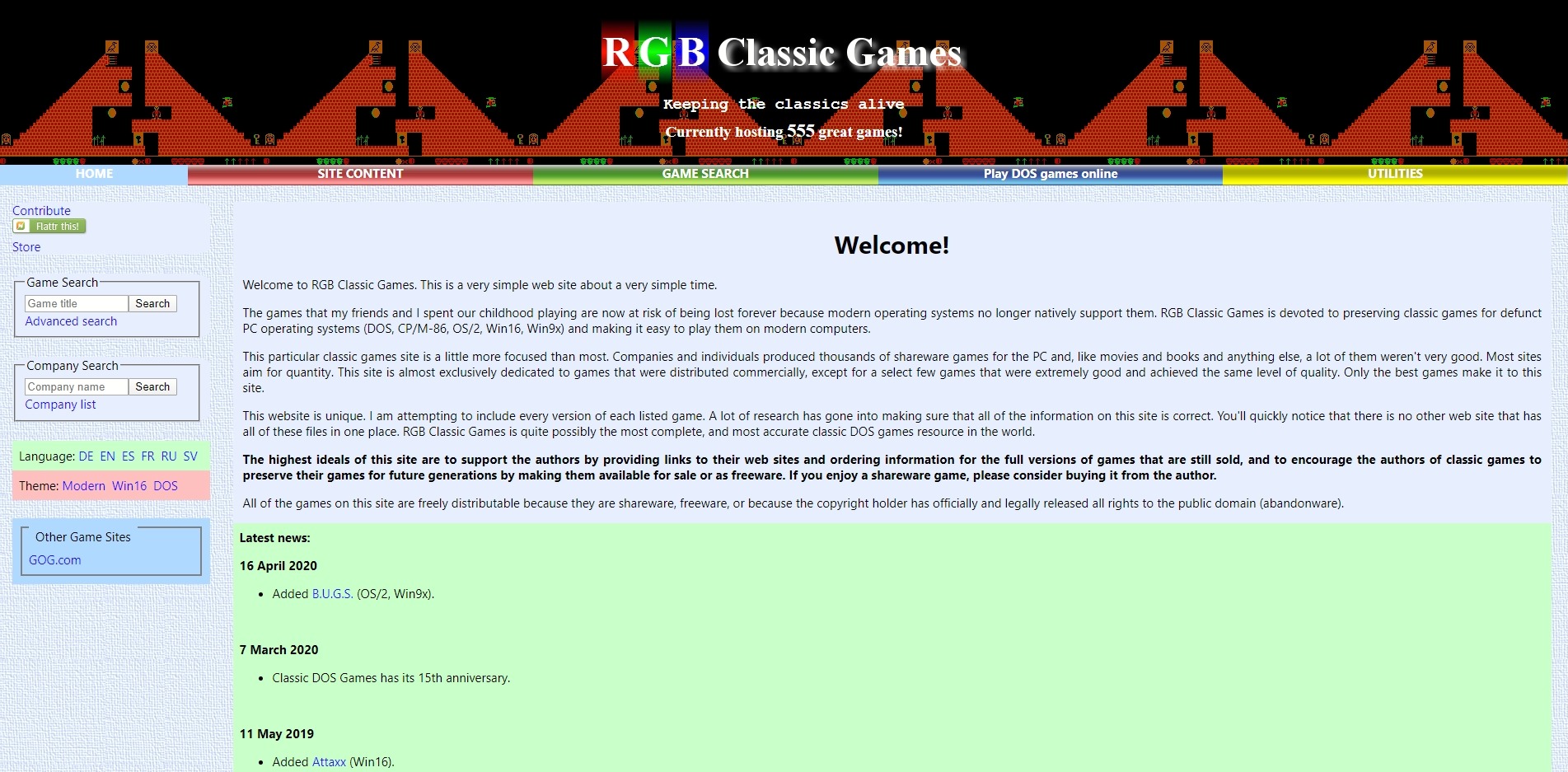 Το RGB Classic Games περιλαμβάνει μια τεράστια γκάμα από κλασικά παλιά games, συμπεριλαμβανομένων και παιχνιδιών που δεν κυκλοφόρησαν ποτέ, ή ακόμα και πιο “μοντέρνους” τίτλους. Η ιστοσελίδα έχει ως κύριο στόχο να διατηρήσει τα παλιά games, αλλά και να κάνει παιχνίδια από λειτουργικά συστήματα όπως τα DOS, CP/M-86, OS/2, Win16 και Win9x, να λειτουργούν και σε πιο μοντέρνα συστήματα.