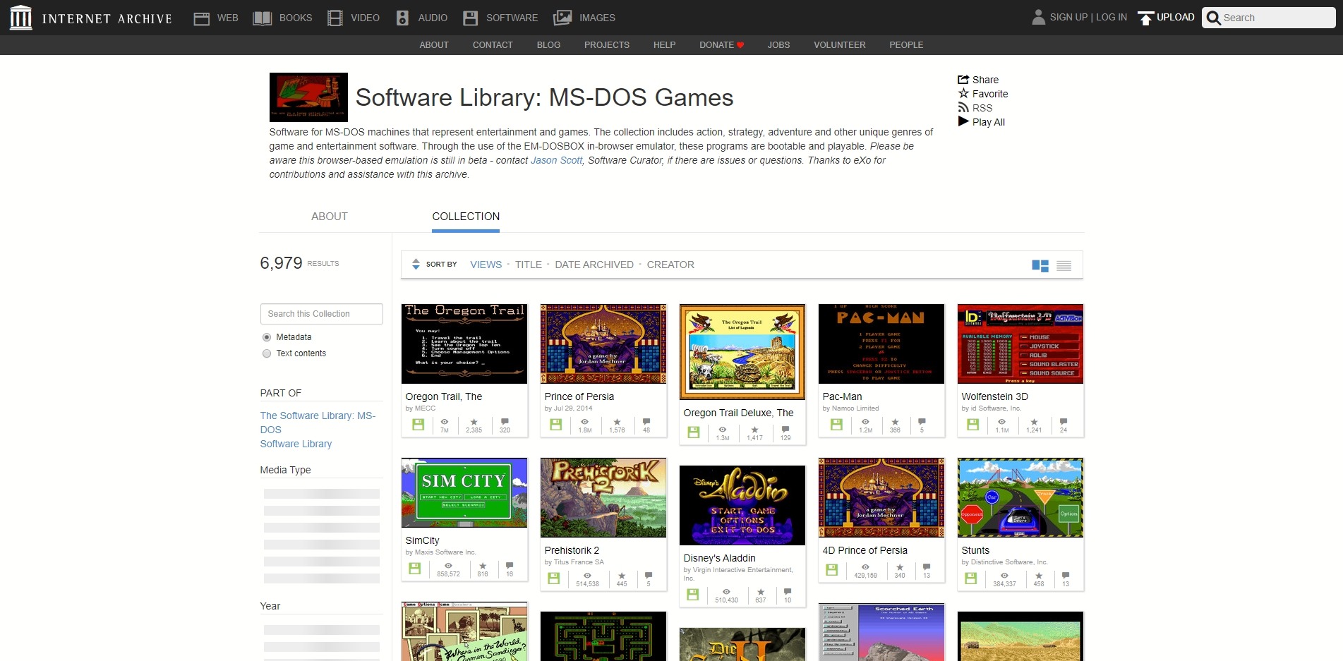 Το 2014, το The Internet Archive πρόσθεσε 900 κλασικά arcade games, και έναν χρόνο αργότερα, το 2015, ανακοίνωσε πως θα διατηρεί πάνω από 2,300 κλασικά DOS games. Δυστυχώς, δεν μπορείς να κατεβάσεις και να εγκαταστήσεις τα παιχνίδια, αλλά η ιστοσελίδα παρέχει μια ενσωματωμένη έκδοση του DOSBox για να μπορείς να τα παίξεις απευθείας από τον web browser σου.