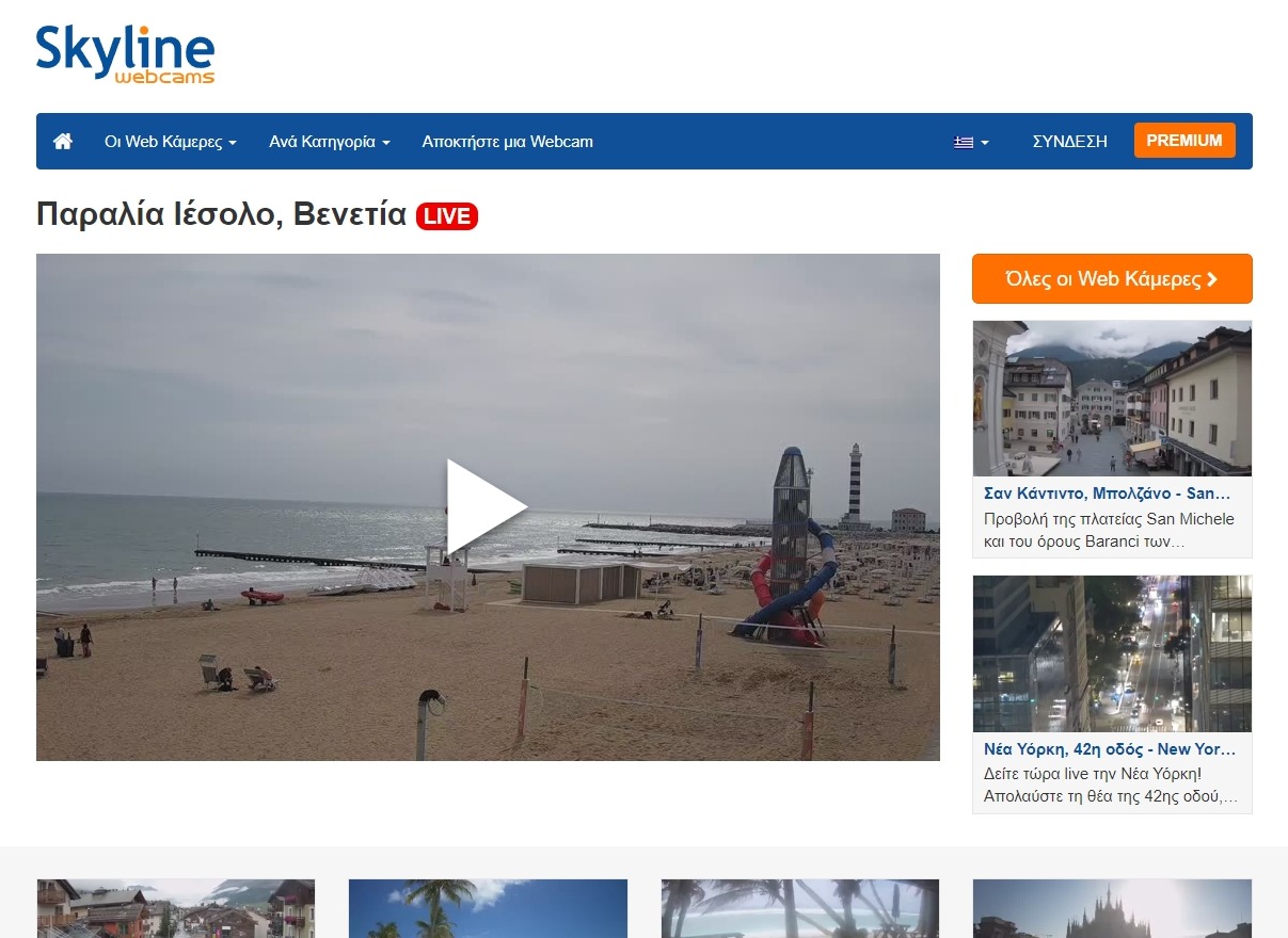 Για όσους ενδιαφέρονται να παρακολουθούν με άνεση live web κάμερες στην Ελλάδα και το εξωτερικό, το Skyline Webcams Premium κοστίζει μόλις 9,50€ ετησίως και σου παρέχει μια εμπειρία χωρίς διαφημίσεις, έναν διαδραστικό χάρτη, πρόσβαση στην κοινότητα και τη διαθέσιμη συνομιλία (chat), μια λίστα αγαπημένων και μια μηχανή αναζήτησης.