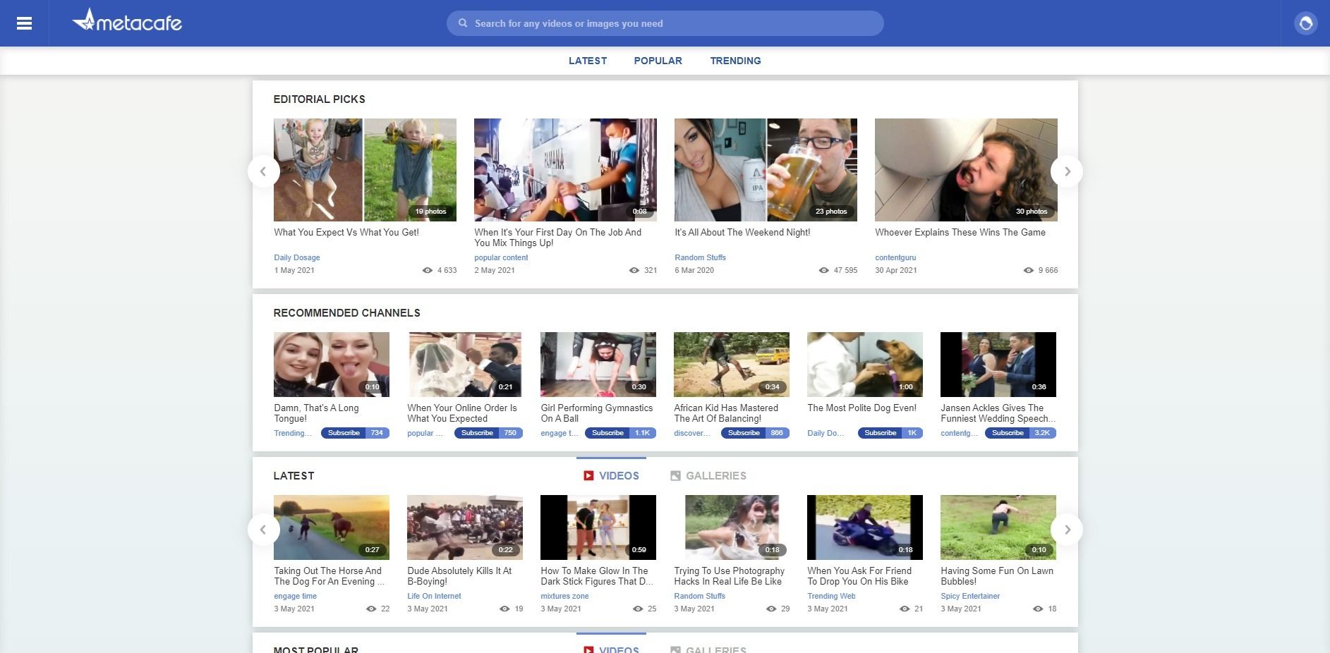 Το Metacafe είναι σίγουρα μια από τις καλύτερες ιστοσελίδες σαν το YouTube, ενώ εστιάζει εξίσου αρκετά στο μικρό περιεχόμενο που δεν αποτελείται από αρκετά λεπτά. Το περιεχόμενο της υπηρεσίας περιλαμβάνει οτιδήποτε μπορείς να φανταστείς, από viral βίντεο, γρήγορα reviews προϊόντων, οδηγίες και συμβουλές, μέχρι και νέα και ειδήσεις.