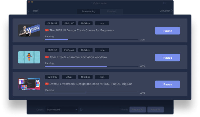 Το VideoHunter είναι μια premium (επί πληρωμής) εφαρμογή η οποία παρέχει επίσης και μια βασική δωρεάν έκδοση (πλέον). Υποστηρίζει περισσότερες από 1,000 ιστοσελίδες και σου επιτρέπει να κατεβάσεις βίντεο και μουσική σε μορφές MP3, MP4, WEBM κ.α.