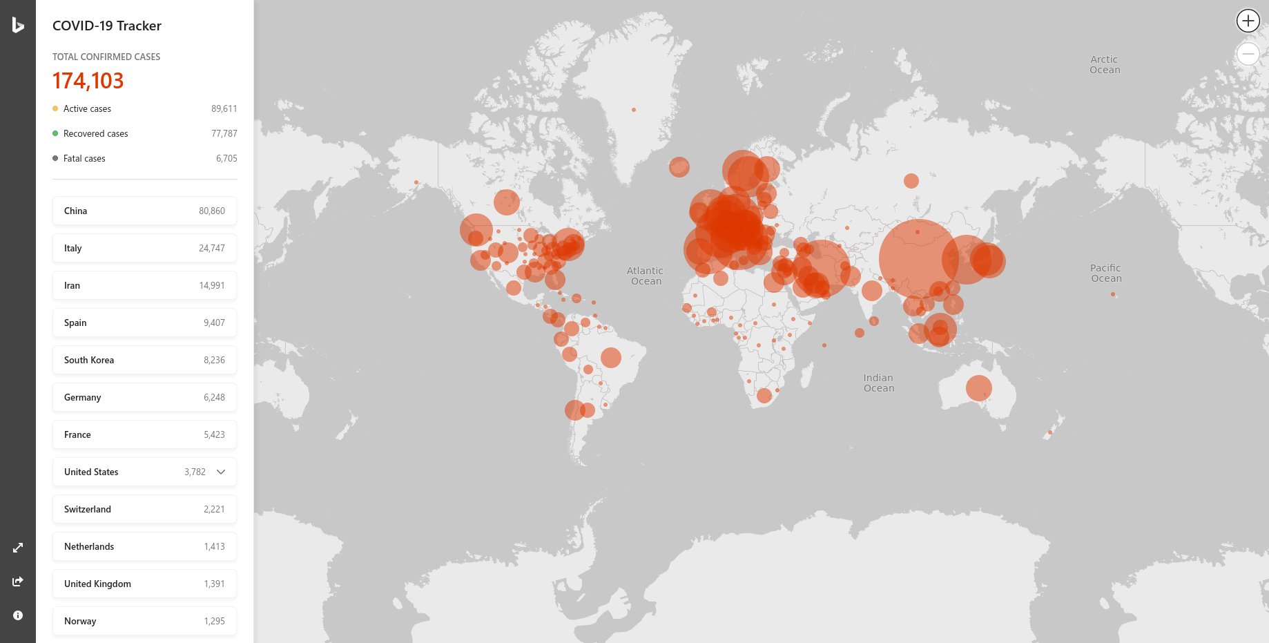 Μπορεί το Bing COVID Tracker να μοιάζει ιδιαίτερα πολύ με παρόμοια άλλα εργαλεία που ήταν από πιο πριν γνωστά, αλλά όχι μόνο είναι από τα γρηγορότερα, αλλά οι χρήστες έχουν την δυνατότητα να το παρακολουθούν και από τα κινητά και tablets τους, και όχι μόνο από τους υπολογιστές/laptops όπως συμβαίνει με τις περισσότερες άλλες αντίστοιχες ιστοσελίδες.