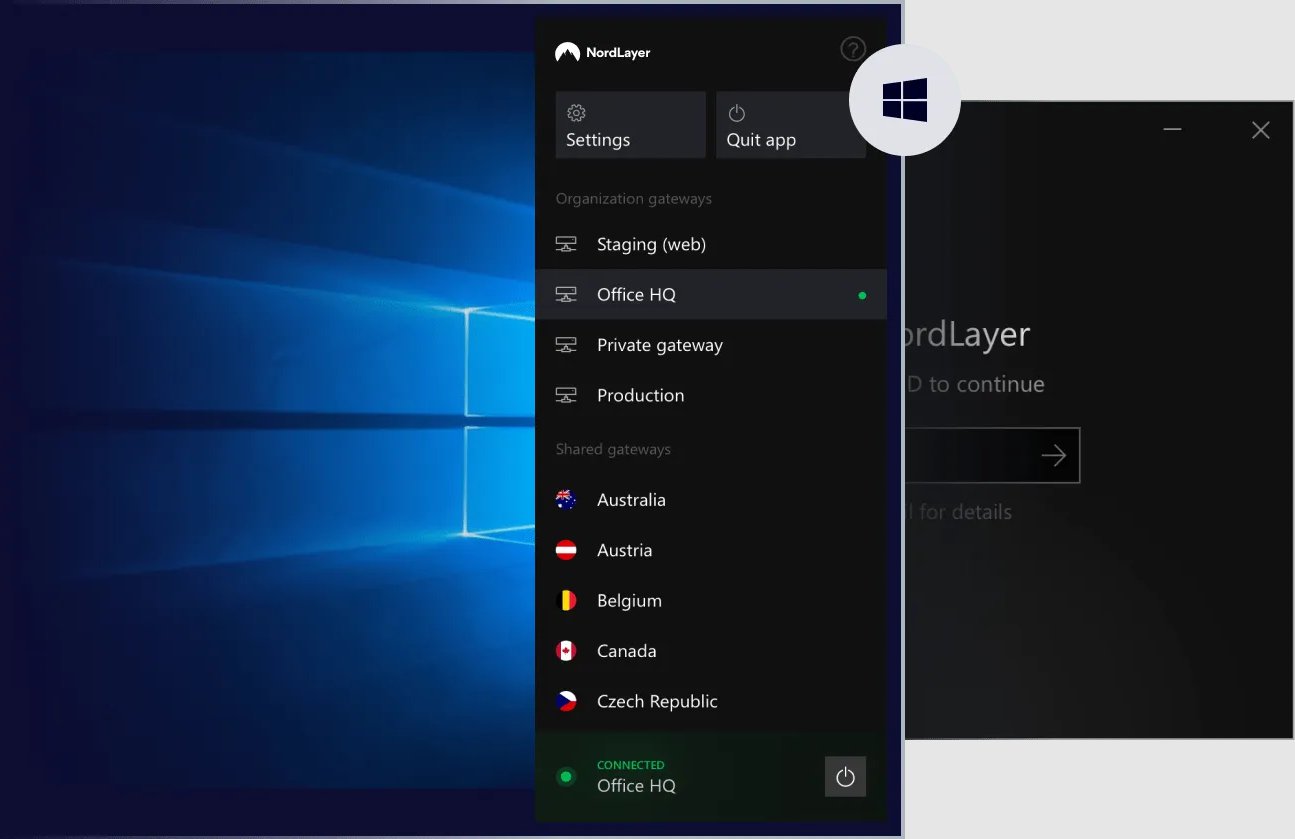 Το NordLayer στα Windows 10 / Image Credits: NordLayer