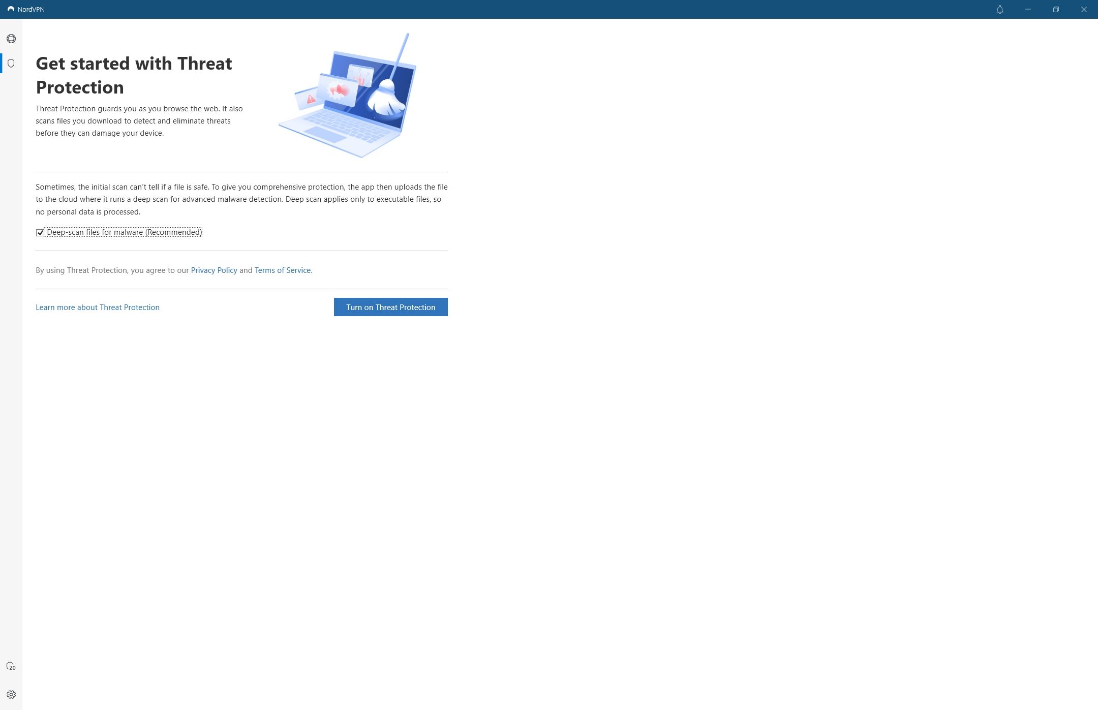 Η σελίδα για την ενεργοποίηση της προστασίας του NordVPN.