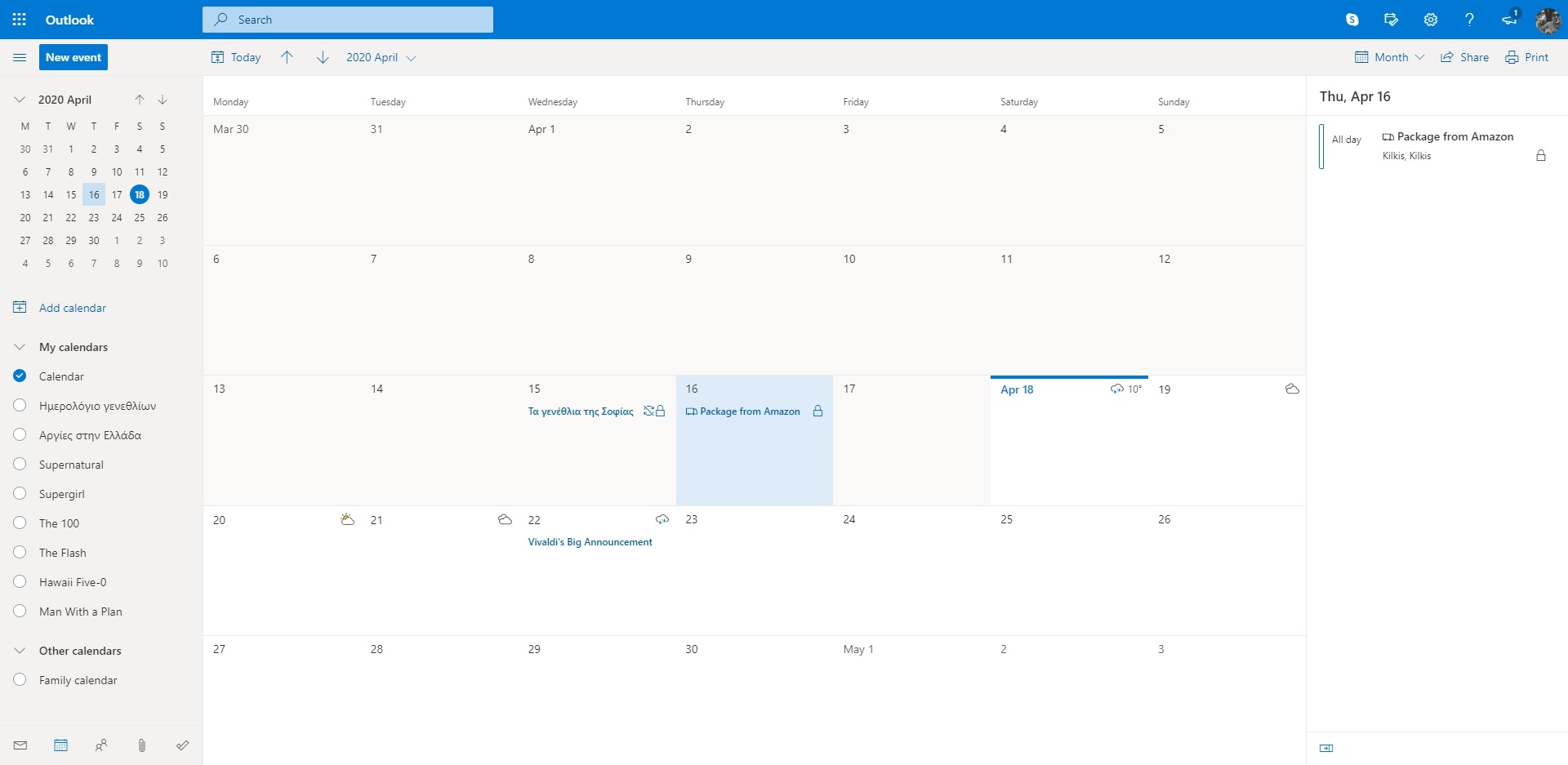 Η πρώτη εφαρμογή που βάζω στην λίστα είναι το ημερολόγιο της Microsoft καθώς είναι cross-platform, που σημαίνει πως είναι διαθέσιμο για κάθε λειτουργικό σύστημα και εφαρμογή. Στα Windows 10, το ημερολόγιο της Microsoft είναι προ-εγκατεστημένο, ενώ στο Android και το iOS μπορείς να το χρησιμοποιείς μέσα από την εφαρμογή Outlook, όπου και είναι ενσωματωμένο.