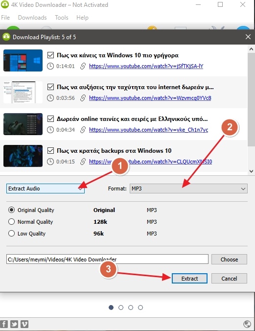 Στη συνέχεια, περίμενε μερικά δευτερόλεπτα και μόλις εμφανιστεί το παρακάτω παράθυρο, επέλεξε την μορφή που θέλεις να κατεβάσεις την playlist, σε ήχου ή βίντεο, την ποιότητα και τον φάκελο στον οποίο θέλεις να αποθηκευτούν.