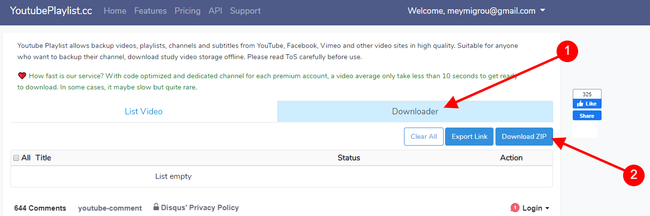Για να κατεβάσεις μια YouTube playlist ολόκληρη και όχι επιλέγοντας ένα ένα τα κομμάτια, επικόλλησε το σύνδεσμο στο διαθέσιμο πεδίο και αυτή τη φορά κάνε κλικ στην καρτέλα Downloader και κάνε κλικ στην επιλογή Download ZIP.