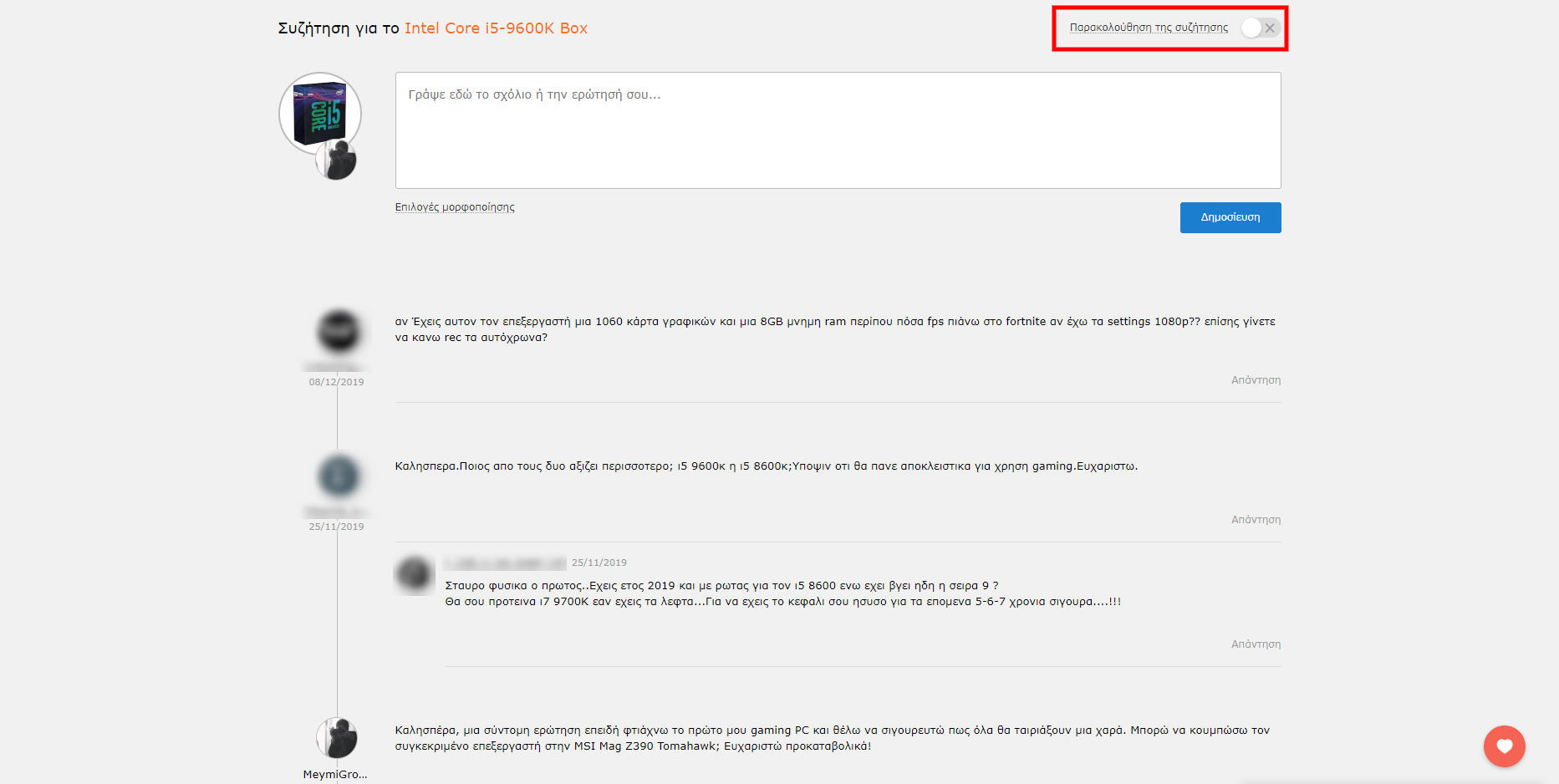 - Συζητήσεις: Από αυτή την σελίδα μπορείς να δεις όλες τις συζητήσεις προϊόντων που έχεις επιλέξει να ακολουθήσεις.