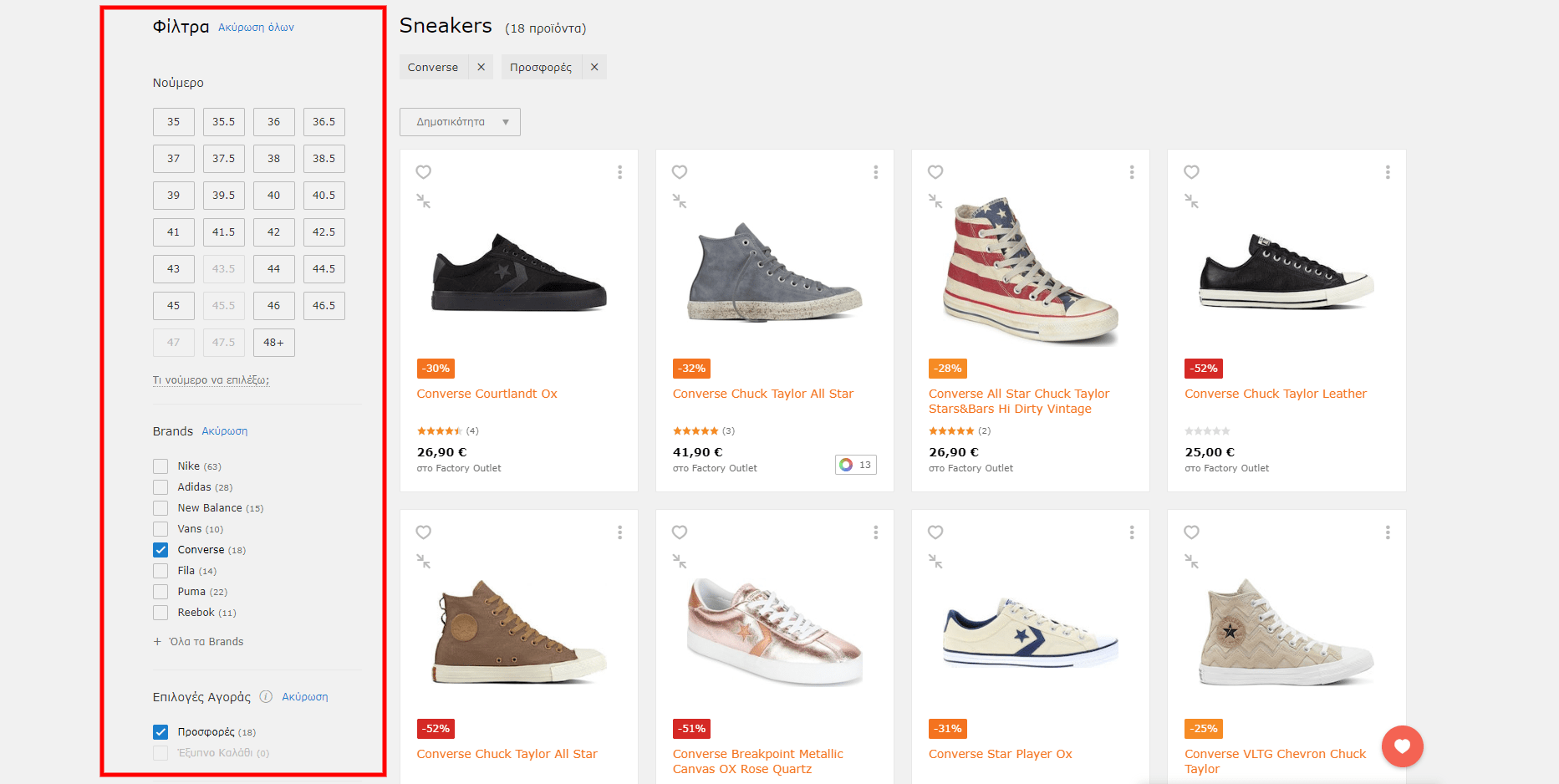 Τέλος, αξίζει να σημειώσω πως μέσα στα φίλτρα θα βρεις και την επιλογή για να βλέπεις μόνο τα προϊόντα που έχουν αυτή την στιγμή έκπτωση. Το φίλτρο ονομάζεται “Προσφορές” και όπως αναφέρει το όνομα του, θα σου εμφανίσει όλες τις διαθέσιμες προσφορές που υπάρχουν στην κατηγορία προϊόντων που αναζητάς.