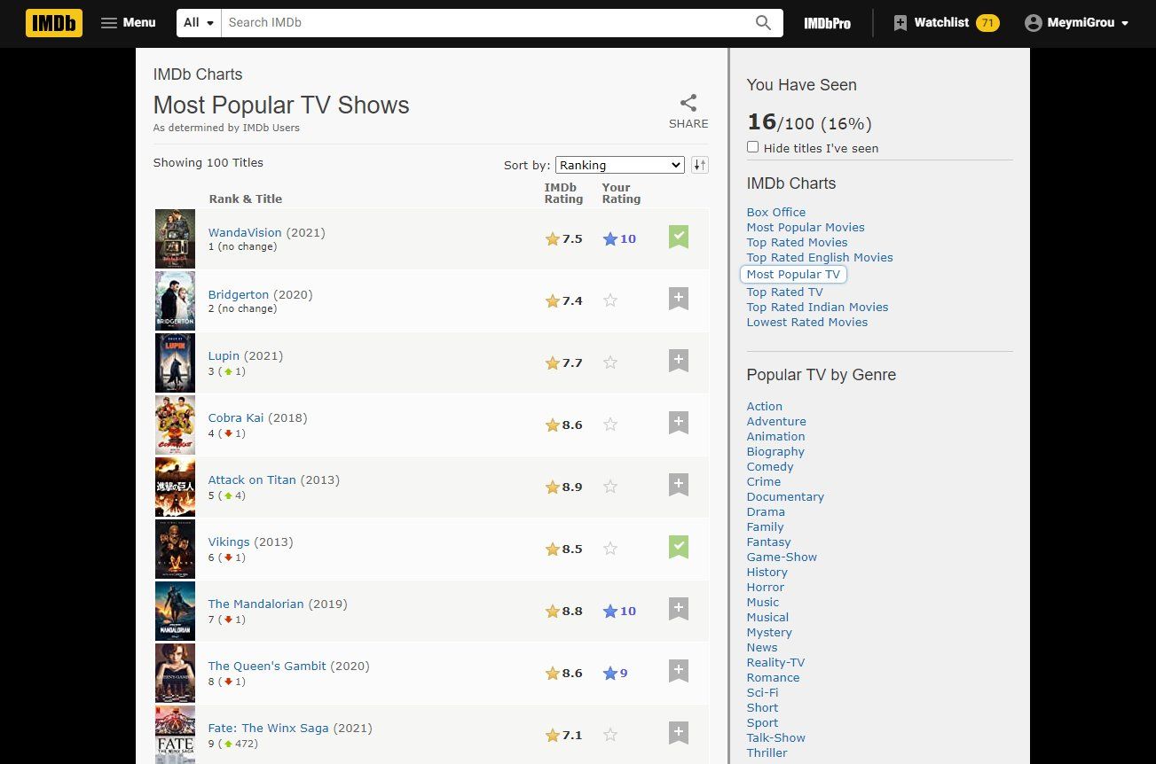 Αν δεν έχεις επισκεφτεί ή δεν έχεις ξανά ακούσει το IMDb (Internet Movie Database), τότε πιθανότητα μας επισκέπτεσαι από διαφορετικό πλανήτη, καθώς πρόκειται για τον γνωστότερο και μεγαλύτερο κατάλογο ταινιών σε ολόκληρο τον κόσμο. Καθένας έχει την δυνατότητα να δημιουργήσει έναν δωρεάν λογαριασμό και να δημιουργεί και να μοιράζεται τις λίστες (ταινιών και σειρών) του με άλλους χρήστες. Μπορείς επίσης να αφήνεις κριτικές και να βαθμολογείς ταινίες, σειρές αλλά και μεμονωμένα επεισόδια, ενώ λαμβάνεις διάφορα “βραβεία” από την ιστοσελίδα κάθε φορά που ολοκληρώνεις ένα επίτευγμα.
