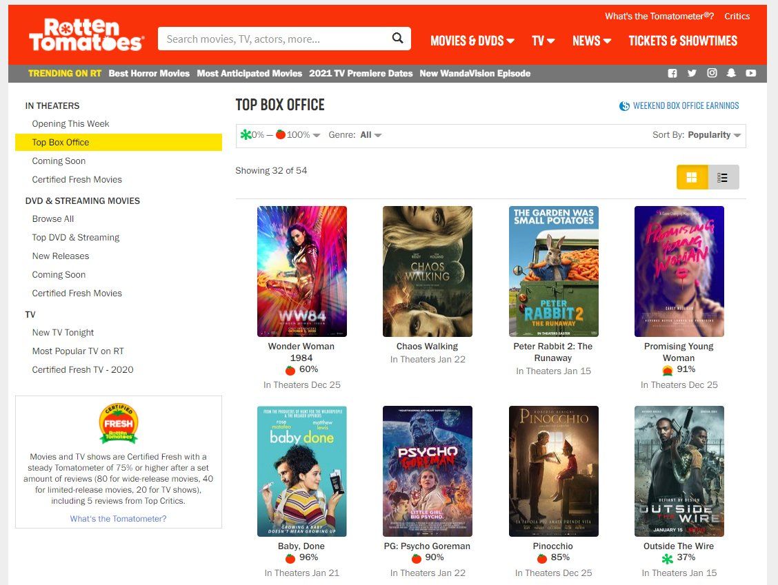 - Οι δημοφιλέστερες ταινίες στο Rotten Tomatoes.