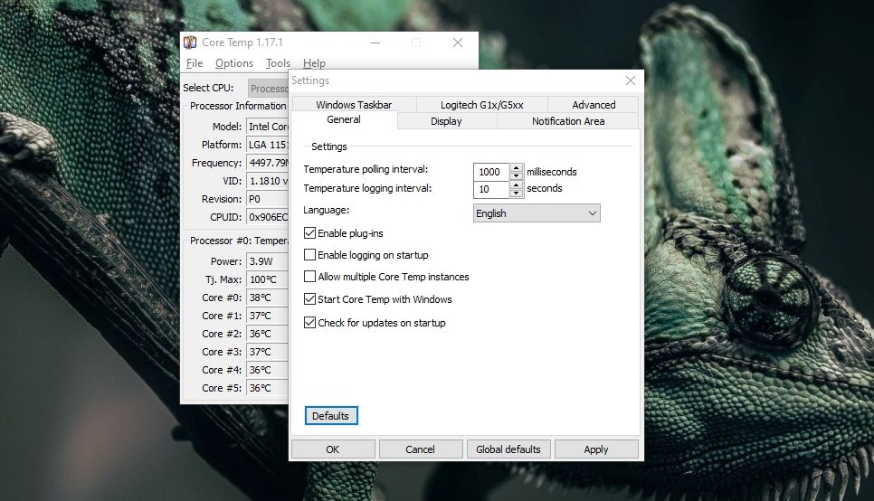 Αφότου κάνεις όλες τις απαραίτητες αλλαγές στις Ρυθμίσεις του Core Temp, θα έχεις την επιλογή να εμφανίσεις τα εικονίδια με την θερμοκρασία του επεξεργαστή απευθείας τέρμα κάτω δεξιά στην γραμμή εργασιών. Αν δεν βλέπεις τα εικονίδια, τότε κάνε κλικ στο βελάκι που δείχνει προς τα πάνω (βρίσκεται τέρμα κάτω δεξιά στα Windows) και κάνε κλικ κρατώντας το παρατεταμένα και σύρε τα εικονίδια έξω απ’ το βελάκι και στο σημείο της γραμμής εργασιών που θέλεις να εμφανίζονται.