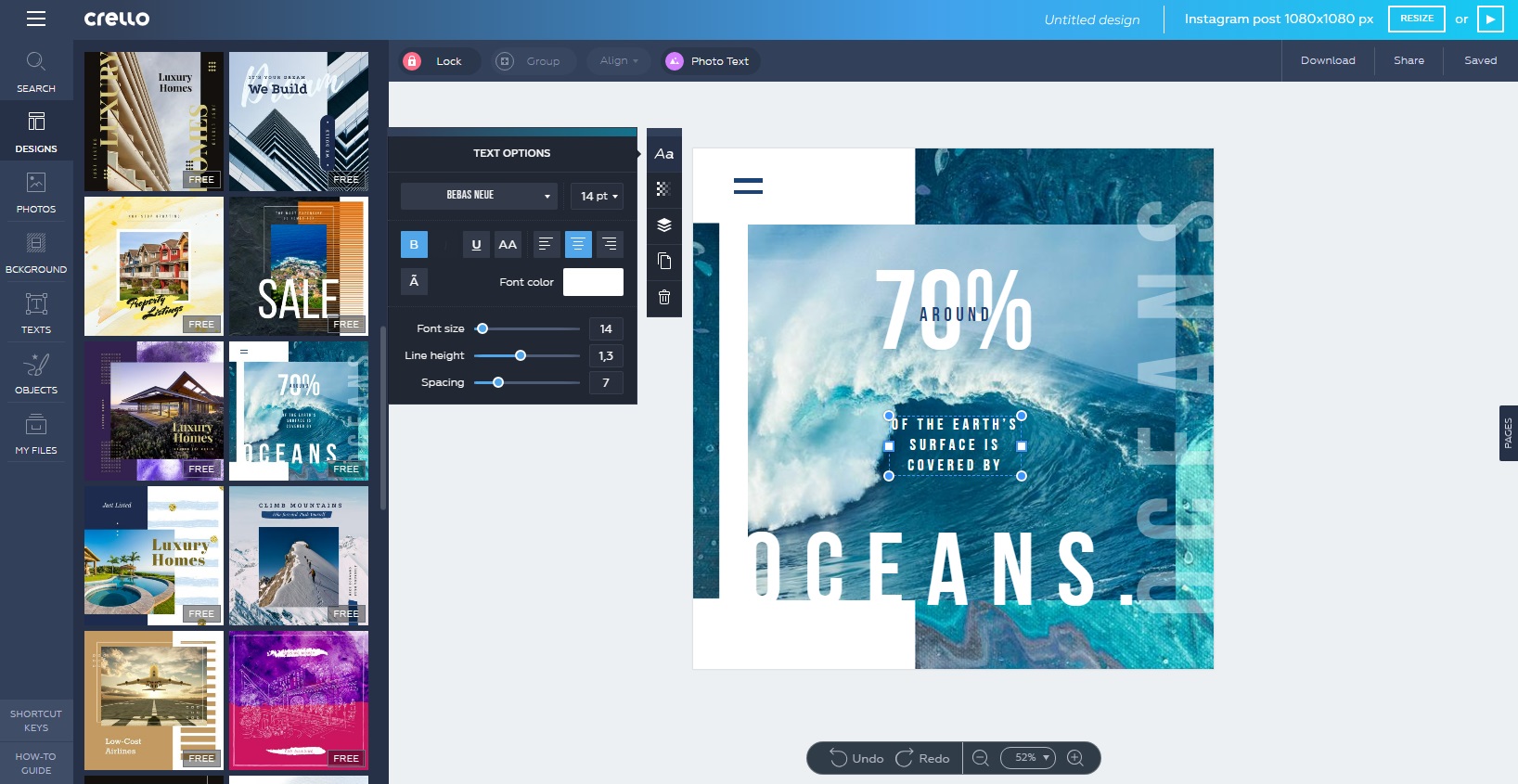 Το Crello είναι ένα online graphic design εργαλείο και εκτός από τις φωτογραφίες και τα εικονίδια, σου επιτρέπει να σχεδιάζεις και animations, βίντεο και ήχο. Ίσως το καλύτερο κομμάτι του Crello είναι το περιβάλλον χρήσης του, το οποίο είναι εύκολο στην χρήση ακόμα και για αρχάριους χρήστες, ενώ παράλληλα είναι μοντέρνο και προσεγμένο.