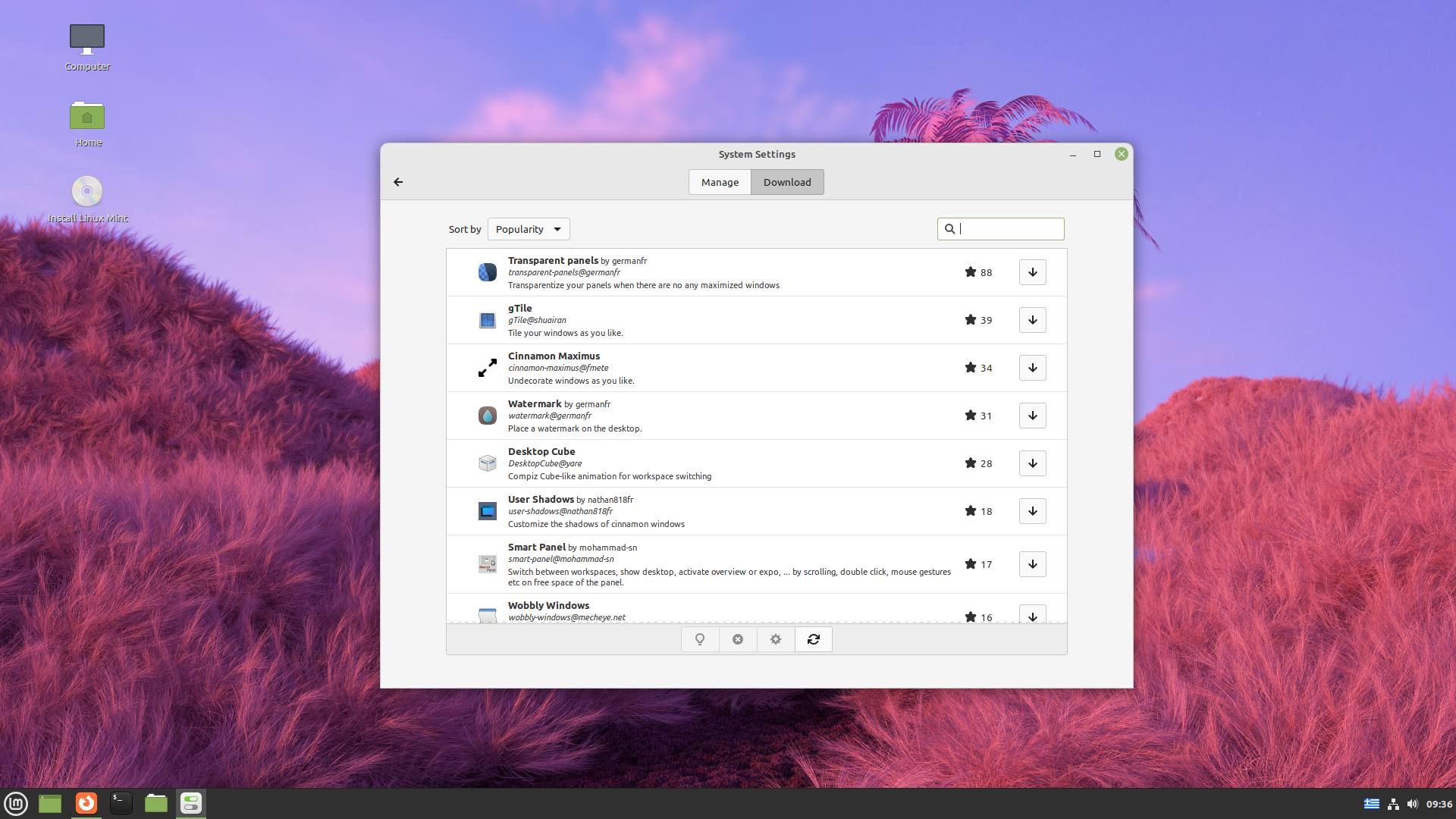 Όπως και το Manjaro Linux, έτσι και το Linux Mint παρέχει επίσης το πρόγραμμα “Επεκτάσεις(Extensions) το οποίο παρέχει ορισμένες έξτρα επιλογές, όπως την δυνατότητα να κάνεις τα παράθυρα αδιάφανα, να μορφοποιήσεις τις σκιές των παραθύρων, να προσθέσεις cube animations, διάφορα εφέ, περισσότερες γραμμές εργασιών και πολλά πολλά ακόμα.