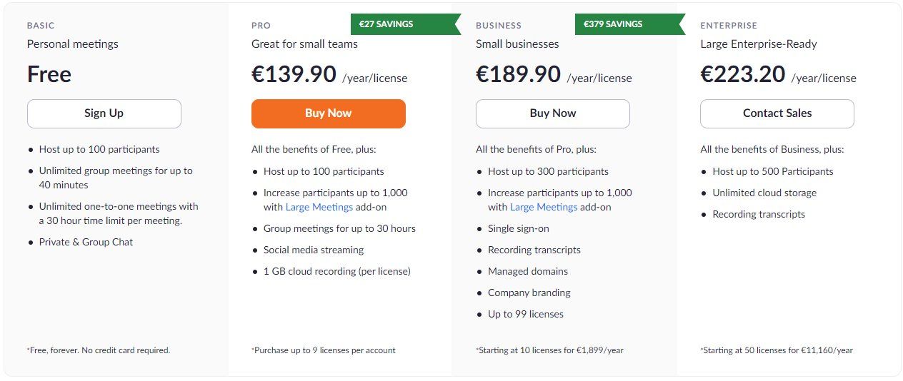 Το Zoom Business είναι ένα συνδρομητικό πακέτο ιδανικό για μικρές και μεγάλες επιχειρήσεις με μεγάλο αριθμό ατόμων και τουλάχιστον 10 hosts. Σε αυτό το πακέτο οι επιχειρήσεις λαμβάνουν επίσης αφοσιωμένη τεχνική υποστήριξη από την ομάδα του Zoom και περισσότερα χαρακτηριστικά και δυνατότητες χωρίς περιορισμούς.