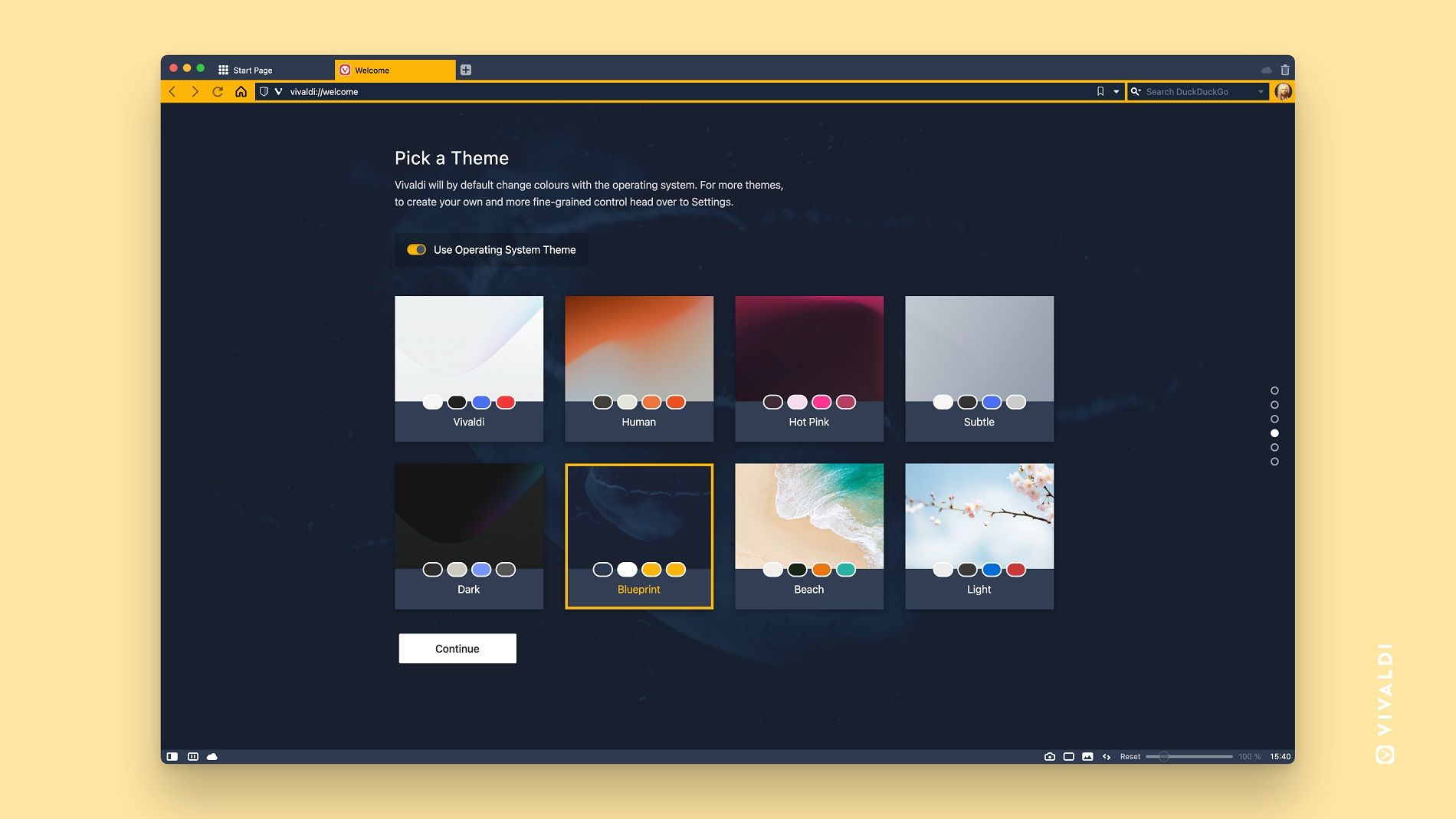Σε αντίθεση με κάθε άλλο web browser που υπάρχει αυτή την στιγμή, ο Vivaldi διαχωρίζει για ένα σημαντικό λόγο: Μπορεί να μορφοποιηθεί ο σχεδιασμός του με τόσους διαφορετικούς τρόπους που είναι διαφορετικός σε κάθε υπολογιστή. Αυτό σημαίνει πως θα έχεις την δυνατότητα να μορφοποιήσεις το πως θα είναι τα χρώματα, τα σχήματα των παραθύρων, τα μεγέθη, η background φωτογραφία στο speed-dial, τα γράμματα στους σελιδοδείκτες και οτιδήποτε άλλο μπορείς να φανταστείς.