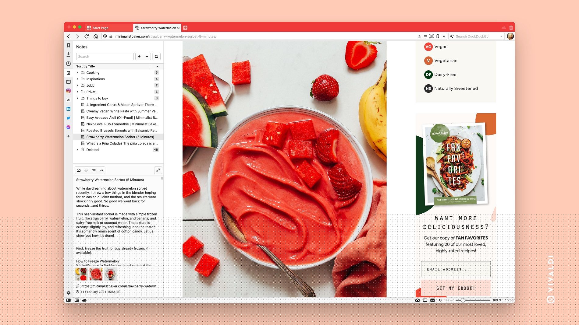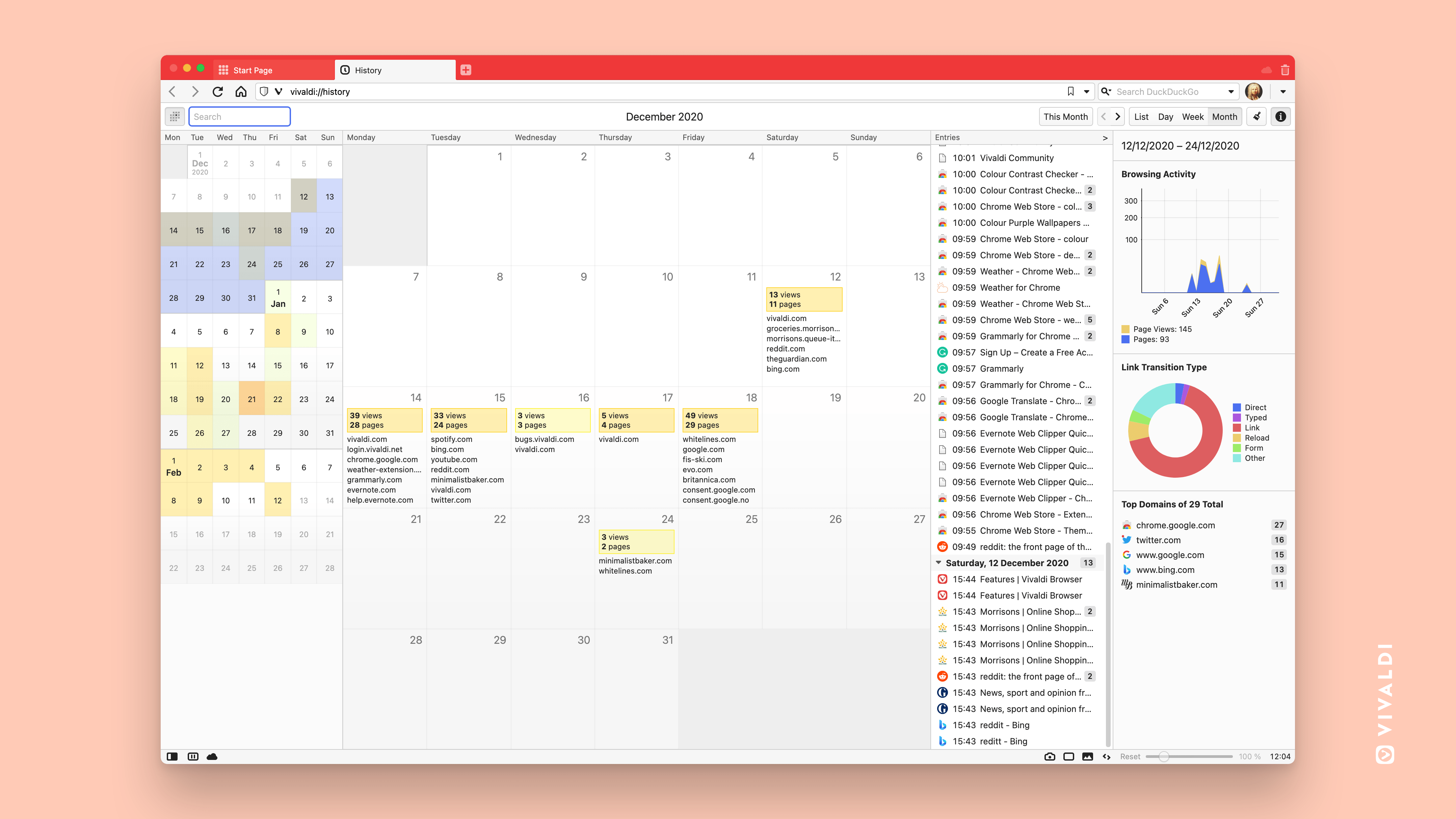 Εκτός από την δυνατότητα που σου δίνεται για να προσθέτεις τις αγαπημένες σου ιστοσελίδες, στο Web Panel θα βρεις επίσης τα εικονίδια για να ανοίξεις το ιστορικό του περιηγητή σου, τα downloads, τους σελιδοδείκτες, τα ενεργά παράθυρα και την καρτέλα σημειώσεων. Η καρτέλα των σημειώσεων συγχρονίζεται επίσης με τον browser στο κινητό σου ή σε άλλους υπολογιστές στους οποίους είσαι συνδεδεμένος με τον Vivaldi λογαριασμό σου.